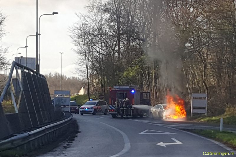 Een personenauto is woensdagochtend uitgebrand op de afrit van de A28 bij de Van Ketwich Verschuurlaan. Er vielen geen gewonden.