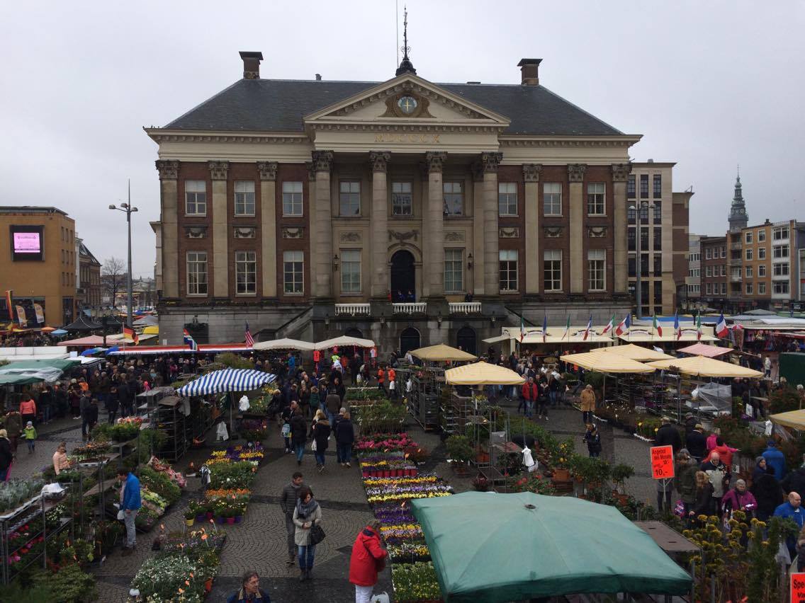 Een ontelbaar aantal bloemen en Duitsers bij de jaarlijkse bloemetjesmarkt in Groningen.