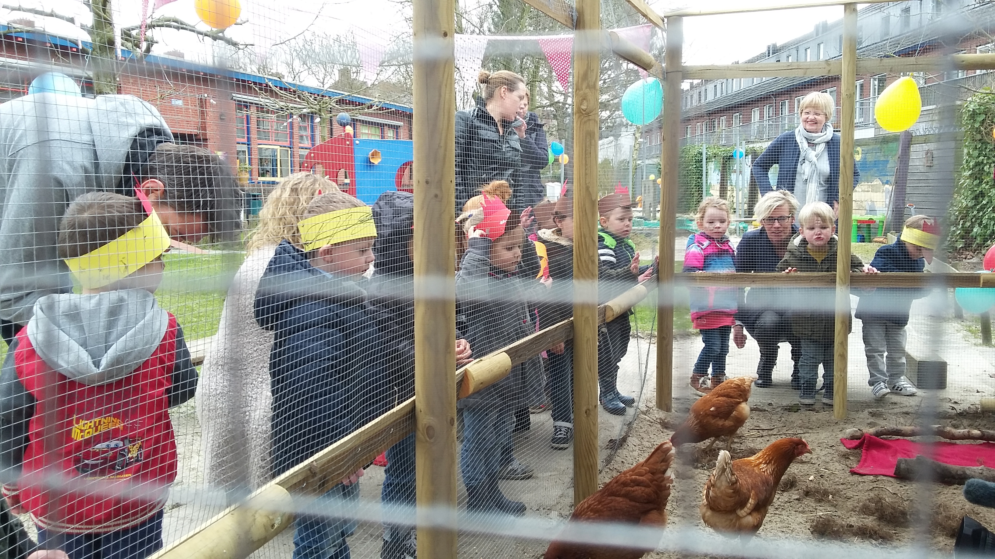 Bedenkster en bouwer van het hok en tevens leidster bij Baloe zegt dat het goed is om op zo’n jong mogelijke leeftijd in aanraking te komen met natuur. “Veel mensen hebben thuis alleen een klein balkon of een kleine tuin. Hier hebben we een groentetuin, boomstammetjes om mee te spelen en nu dus ook drie kippen”, aldus Elly van de Velde.