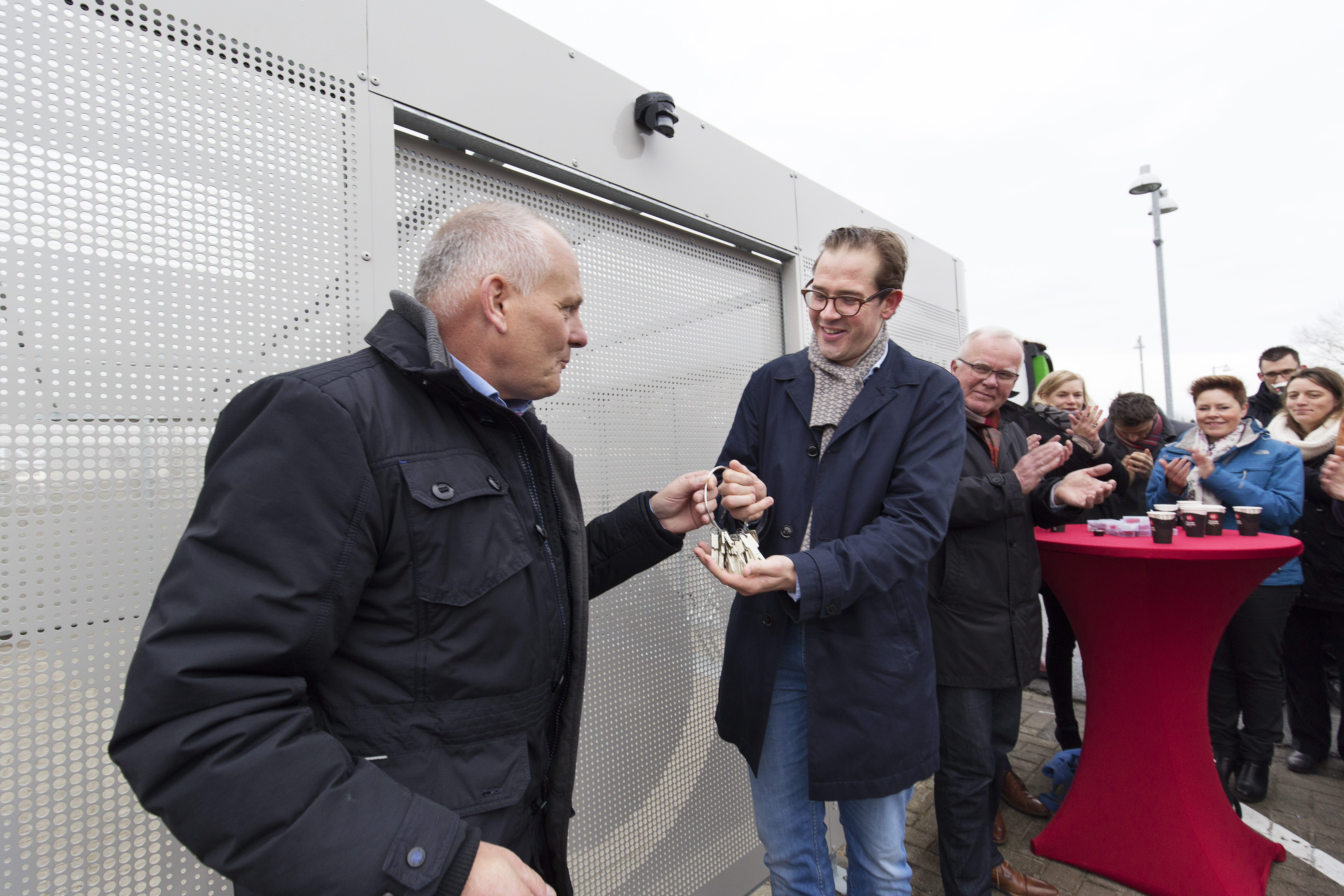 datum:20160321 / locatie: Nederland, Hoogkerk, P & R Paul de Rook opent fietskluizen op P+R te Hoogkerk