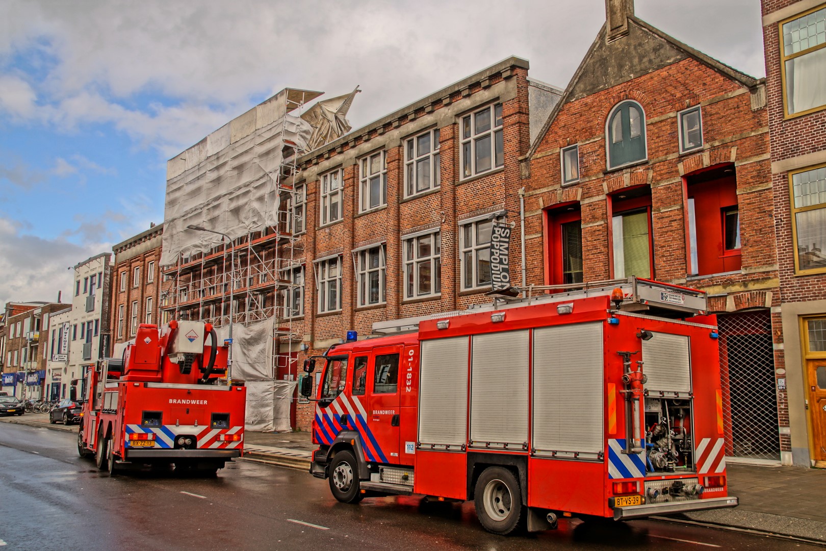 De brandweer heeft maandagmiddag de handen vol gehad aan een deels omgewaaide steiger bij popcentrum Simplon aan het Boterdiep. Dat had te maken met de stormachtige wind.