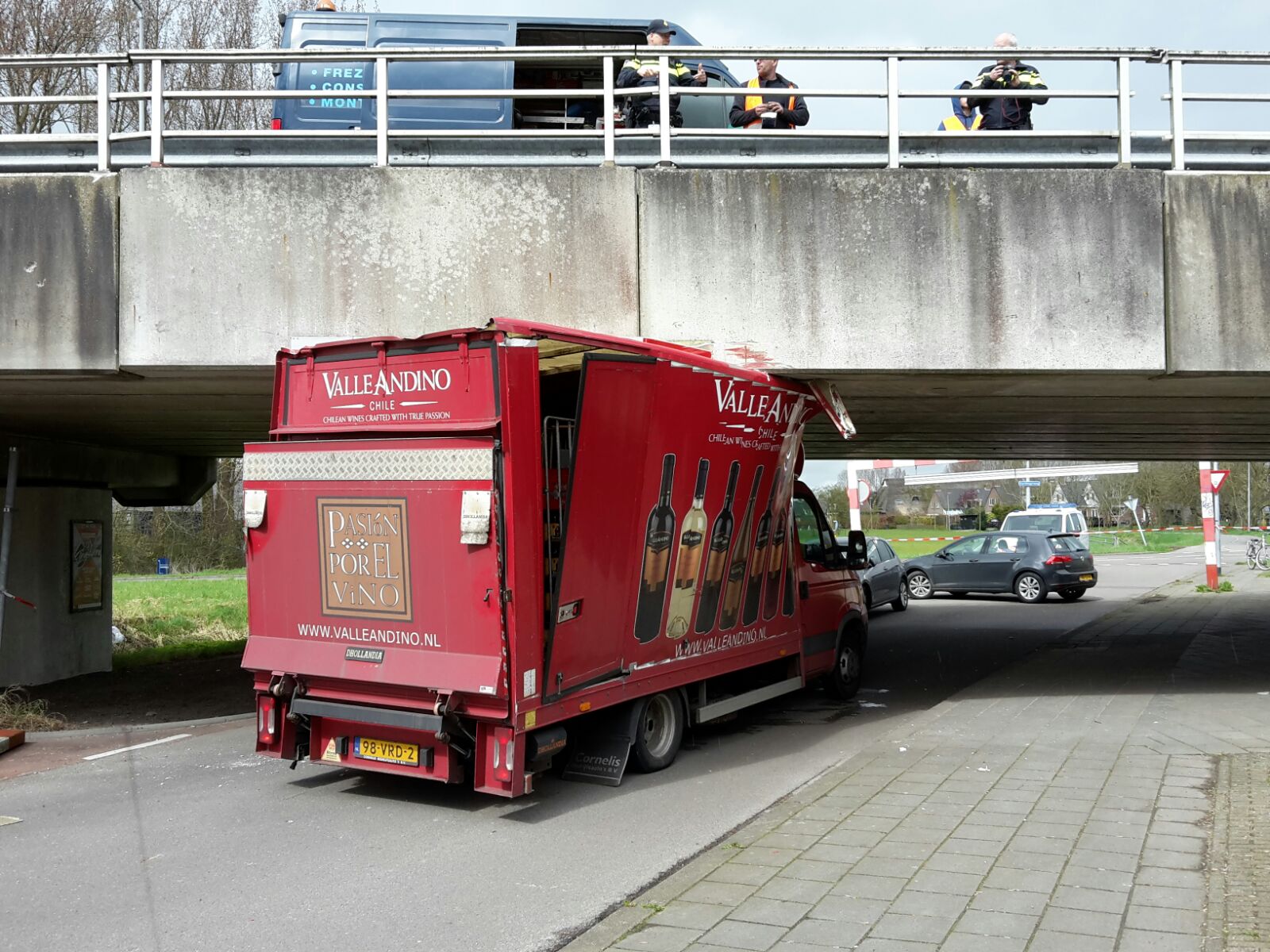 De chauffeur van een bestelwagen schatte vrijdag aan de Pop Dijkemaweg de hoogte van zijn auto – of het viaduct – nogal verkeerd in. Het leverde een flinke schadepost op.