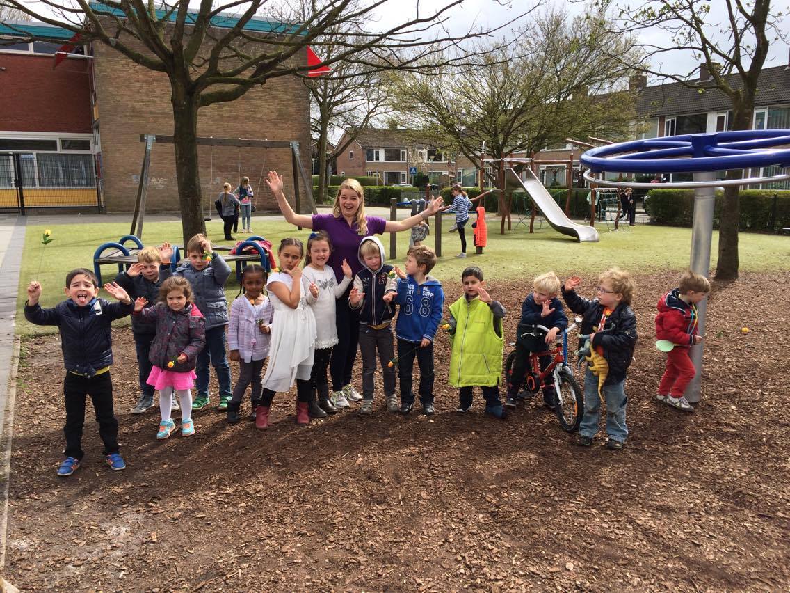 In totaal werden er vandaag 3500 bloemen aan elkaar gegeven door de kinderen.