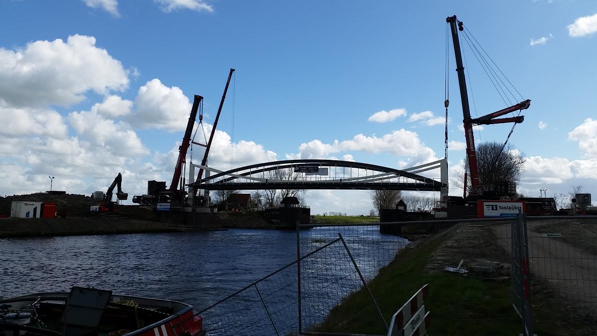 De nieuwe brug van Dorkwerd is zaterdagmorgen op zijn plaats gezet. De oude brug is gisteren verwijderd.