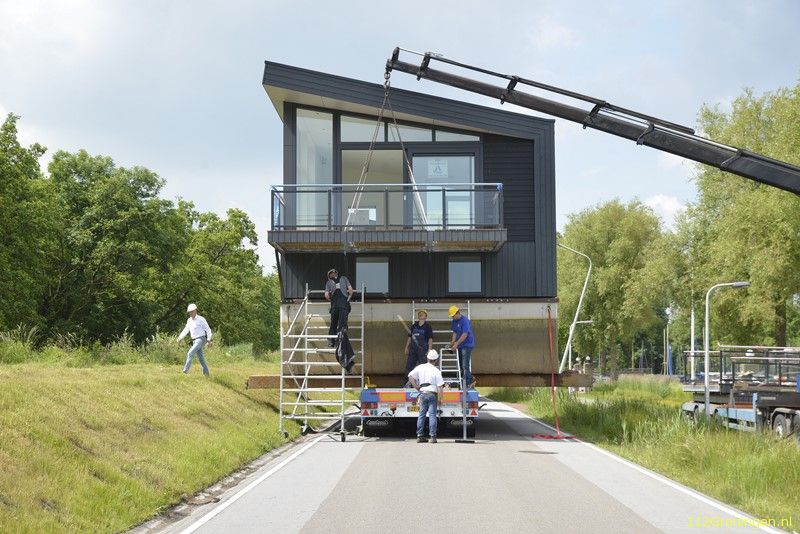 De recreatiewoningen worden later naar hun definitieve plek in het Paterswoldsemeer gesleept bij de Groningerweg bij de grens van Groningen en Eelde Paterswolde.