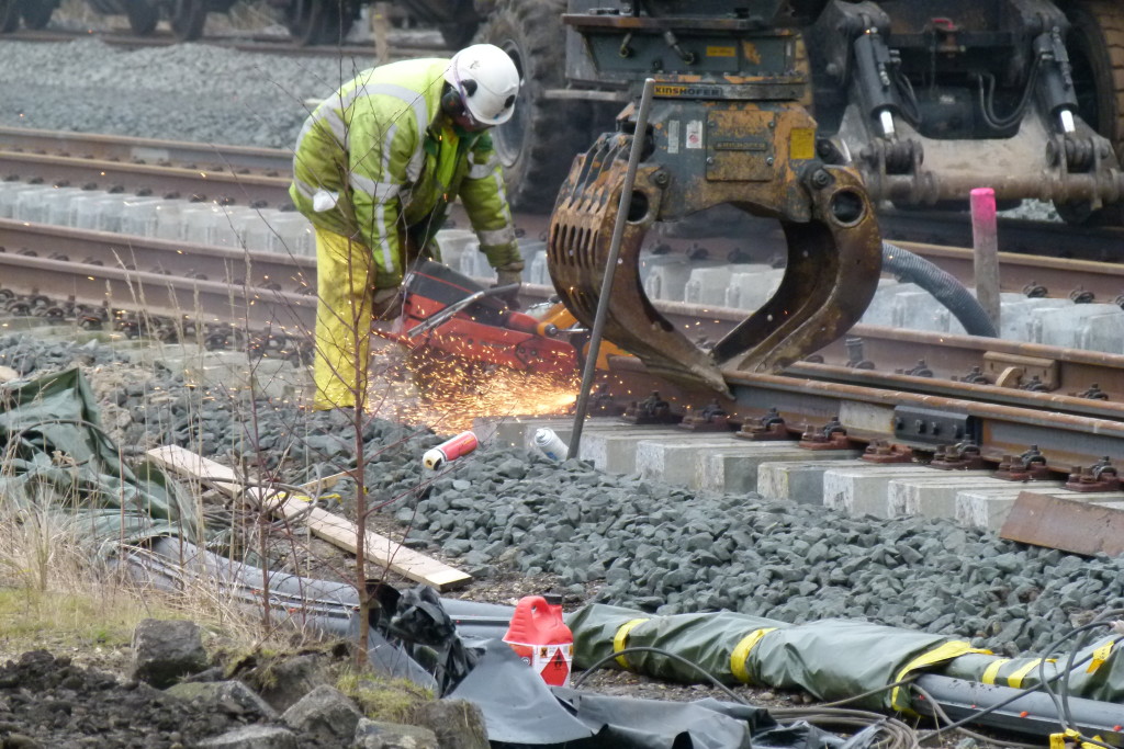 De verwachting is dat de werkzaamheden in de nacht van zondag op maandag afgerond kunnen worden, zodat er maandag weer treinen kunnen rijden.