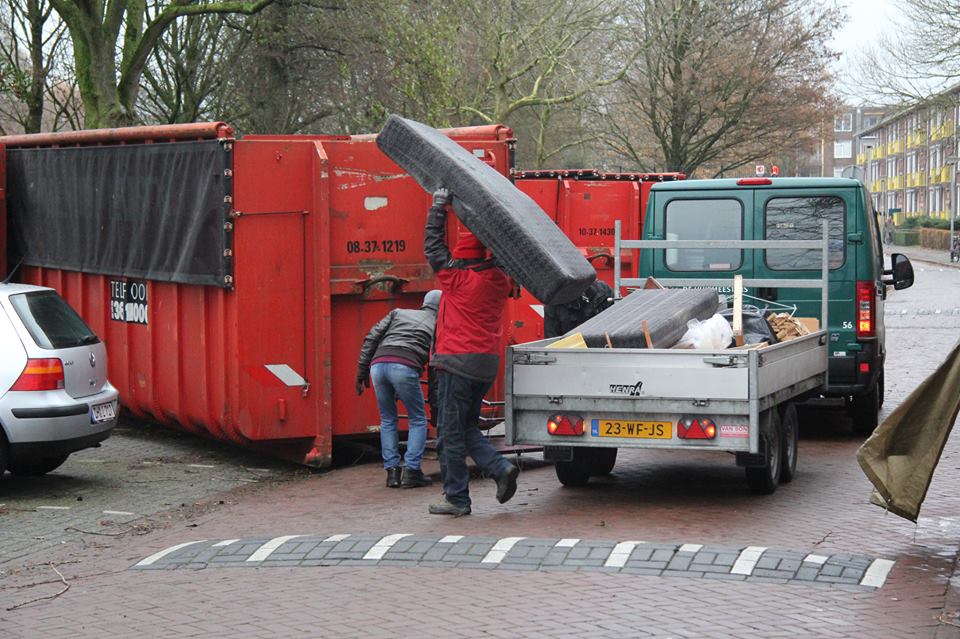 De studenten hiertegenover hebben 3 weken geleden 2 lattenbodems buiten gezet. Ze staan er nog steeds...