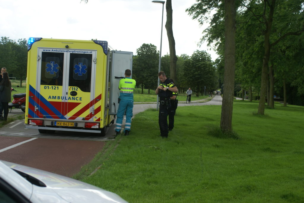 De man is met hoofdletsel per ambulance naar het ziekenhuis gebracht. De politie heeft zijn fiets meegenomen naar het politiebureau.