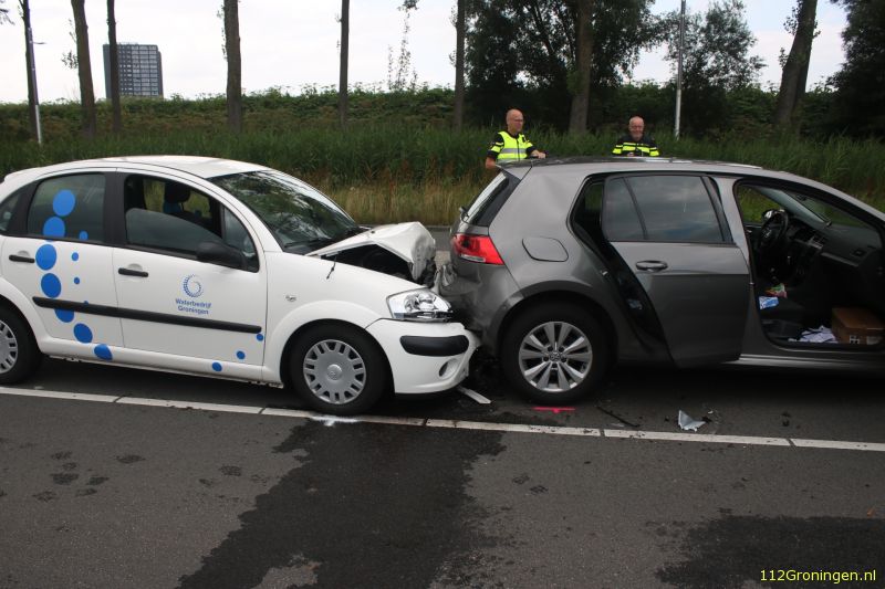 Het ongeluk gebeurde rond 15.45 uur ter hoogte van de kruising met de Heslingborgweg. De bestuurder van een witte auto had te laat in de gaten dat een grijze wagen die voor hem reed afremde. Hierdoor was een botsing het gevolg, waarbij beide vehikels flink beschadigd raakten.