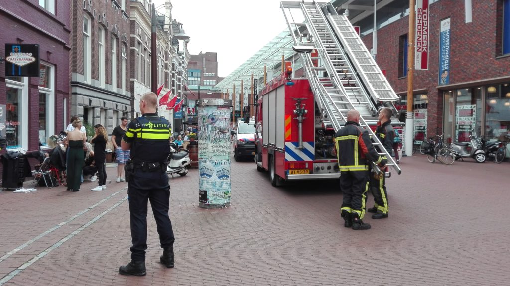 De kappers zetten de stoelen en hun benodigdheden buiten om daar verder te knippen. Ondertussen controleerde de brandweer binnen wat er aan de hand is. Waarschijnlijk was er lekkage en heeft dat voor kortsluiting in de meterkast gezorgd, zo meldt de brandweer.