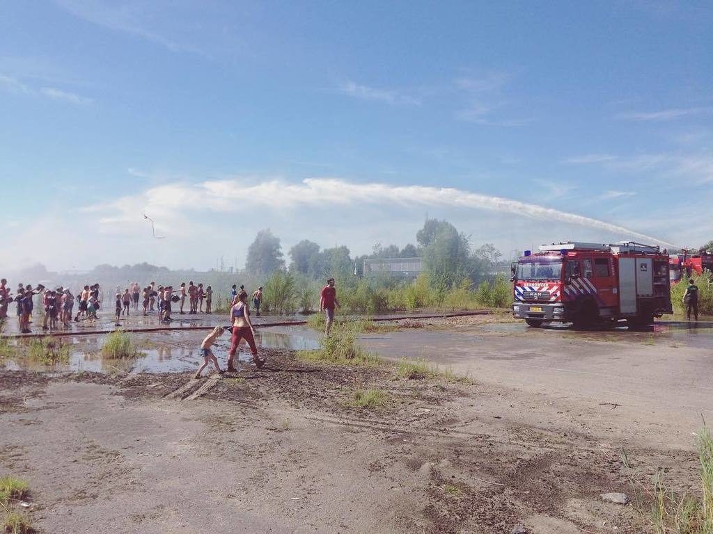 Dat gebeurt allemaal onder warme weersomstandigheden. Vrijwilligers waren de afgelopen dagen al druk in de weer om iedereen van water te voorzien. Maar omdat de temperatuur donderdag zo ver op liep besloot de Groninger brandweer om een handje te helpen. Met een hoogwerker, bluswagen en schuimbluswagen rukte men uit naar het terrein om de kinderen te bedolven onder liters koel water. En de kinderen … die vonden het geweldig.