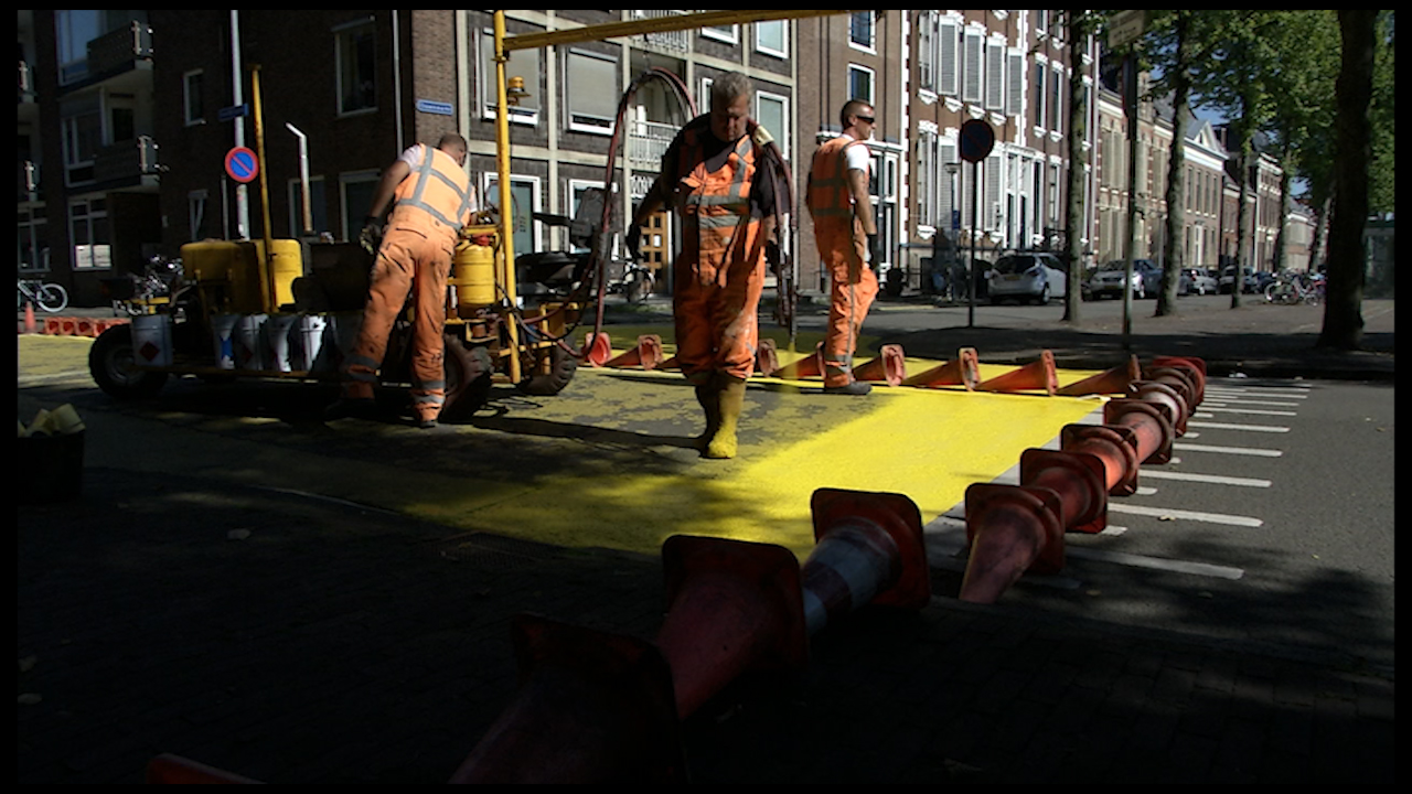 Woensdag is een begin gemaakt met het aanbrengen van een nieuwe verflaag op de kruisingen van de Nieuwe Boteringestraat.