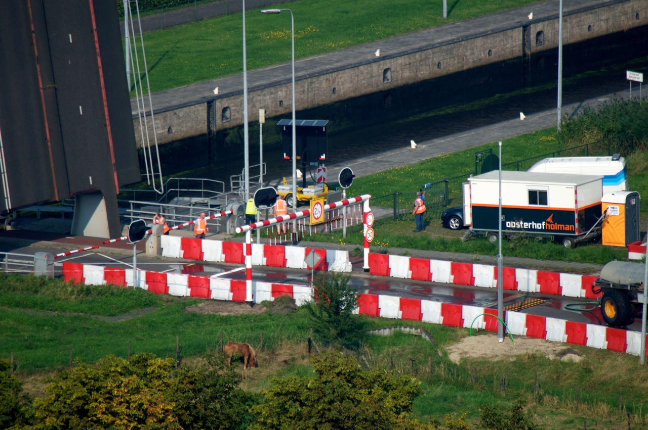 De brug was de afgelopen maand gestremd nadat een schip er tegenaan was gevaren. Rijkswaterstaat heeft de afgelopen weken gewerkt aan een tijdelijk herstel. Wel is er sprake van een wegversmalling, maar verkeersregelaars bieden de helpende hand.