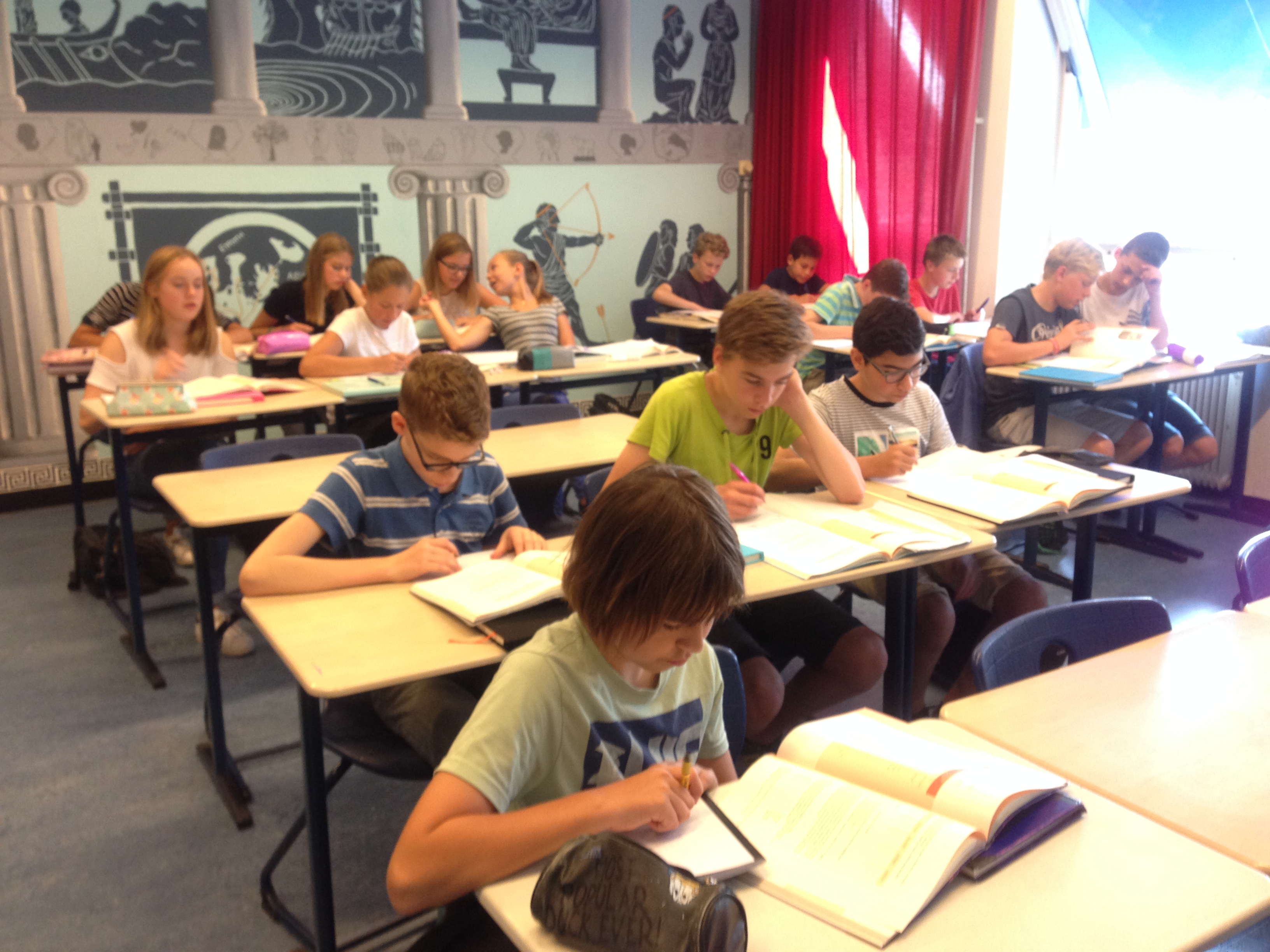 Klas 2E van het Willem Lodewijk Gymnasium is één van de klassen die met de nieuwe methode werkt. “Ik vind het heel mooi”, zegt Robert-Jan. “Het lijkt heel erg op de methode SPQR die we voor Latijn gebruiken. Het is overzichtelijk, een goed en duidelijk lettertype, en ook genoeg mooi afbeeldingen.”