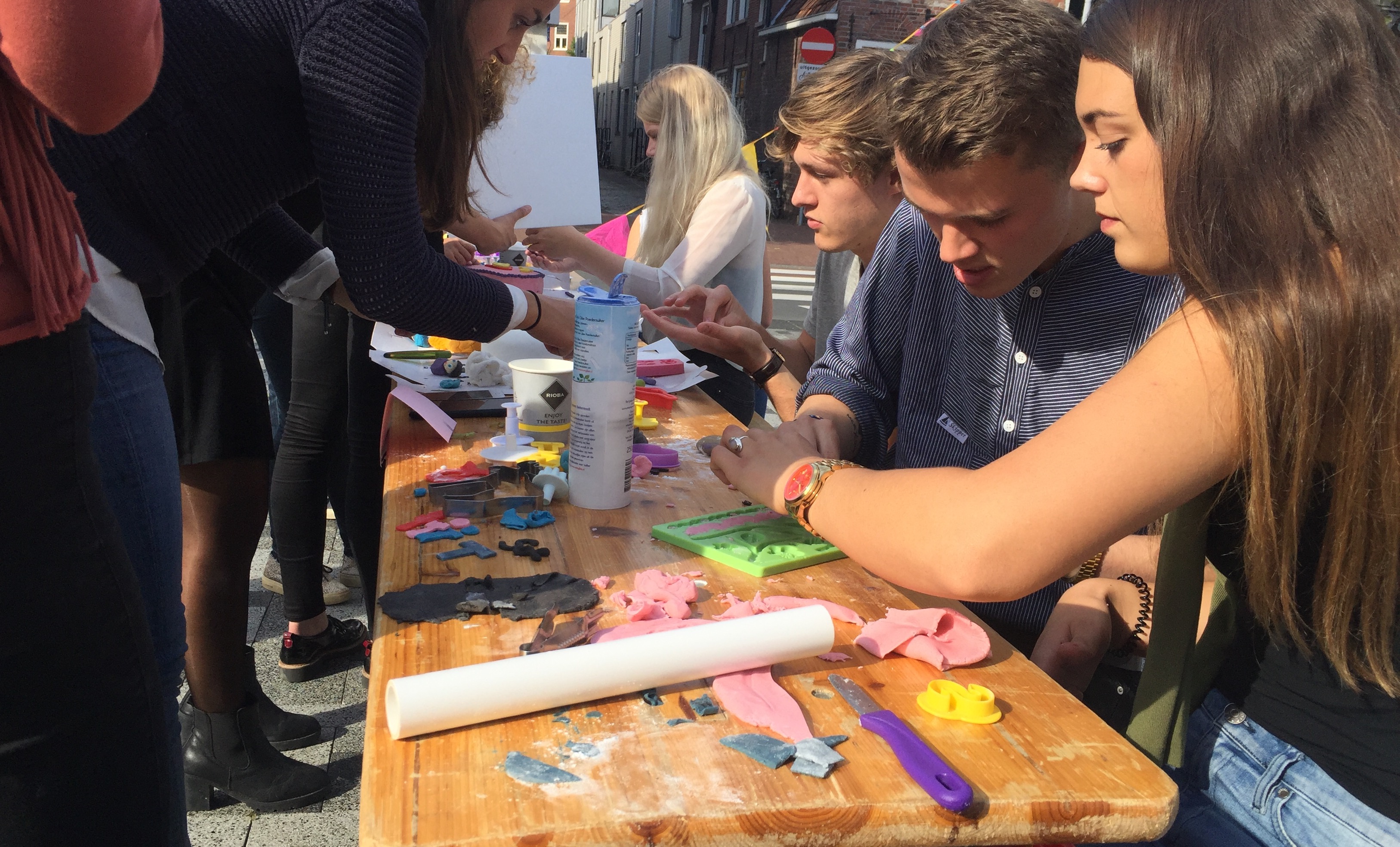 Het Damsterplein diende maandagmiddag als keuken voor studentenbakkers. Zestig studenten streden daar om de beste taart tussen het marsepein, poedersuiker en beslag.