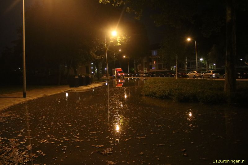 De Iepenlaan in de wijk Selwerd kwam donderdagavond rond 11 uur blank te staan vanwege een gesprongen waterleiding.
