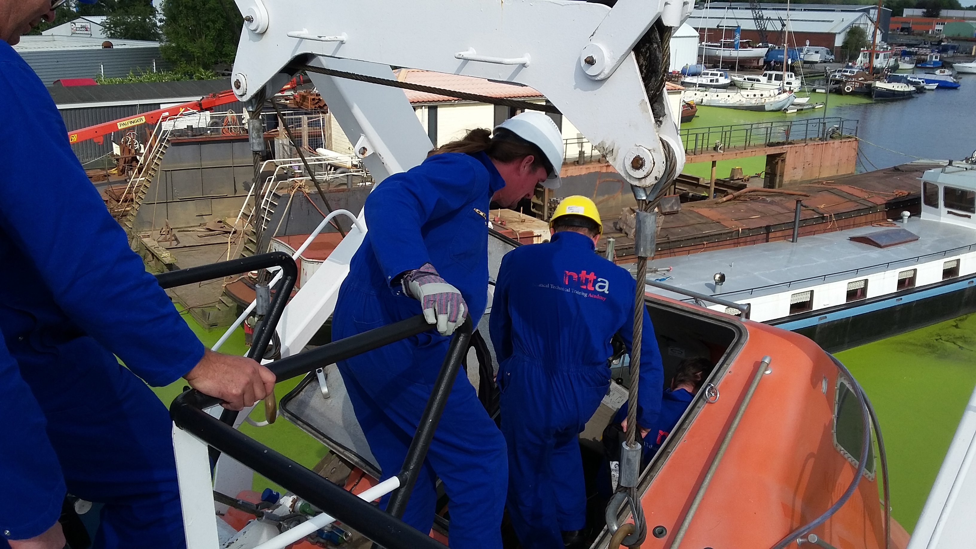 Een onderdeel van de cursus is het verlaten van een schip of booreiland door middel van een vrijeval boot. In Noord Nederland is dit trainingscentrum de enige mogelijkheid om de vrijeval te trainen.