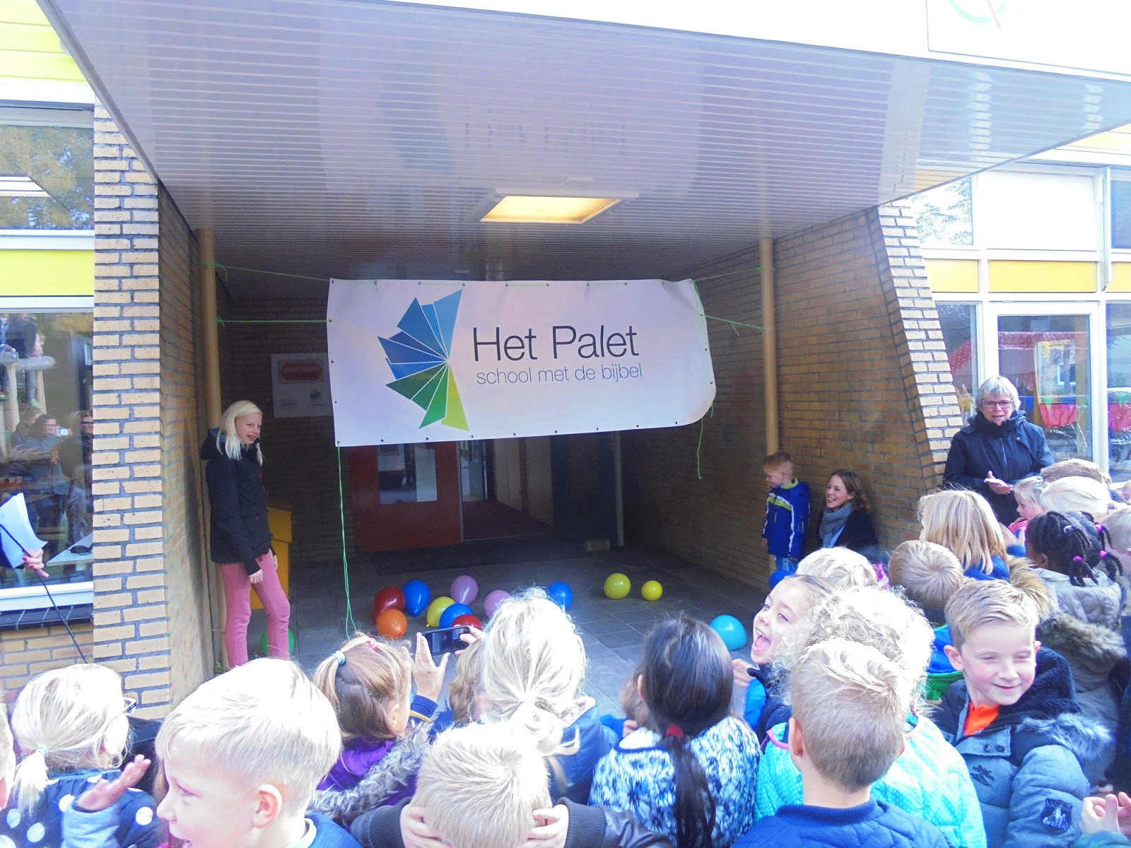 “Een schilderspalet heeft veel verschillende kleuren. Op deze school zitten ook veel verschillende kinderen, iedereen is speciaal en we kunnen veel van elkaar leren.” zo omschreef directeur Eline Heeringa het in haar toespraak. Niet alleen heeft de school een nieuwe naam, het pand is ook voorzien van een nieuw laagje verf en het grote hek is verdwenen.