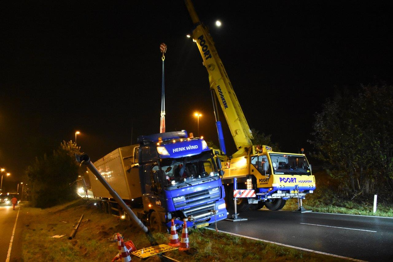 De vrachtwagen is geborgen en de chauffeur is met de schrik vrijgekomen. De 35.000 kilo bieten zijn ook gered.