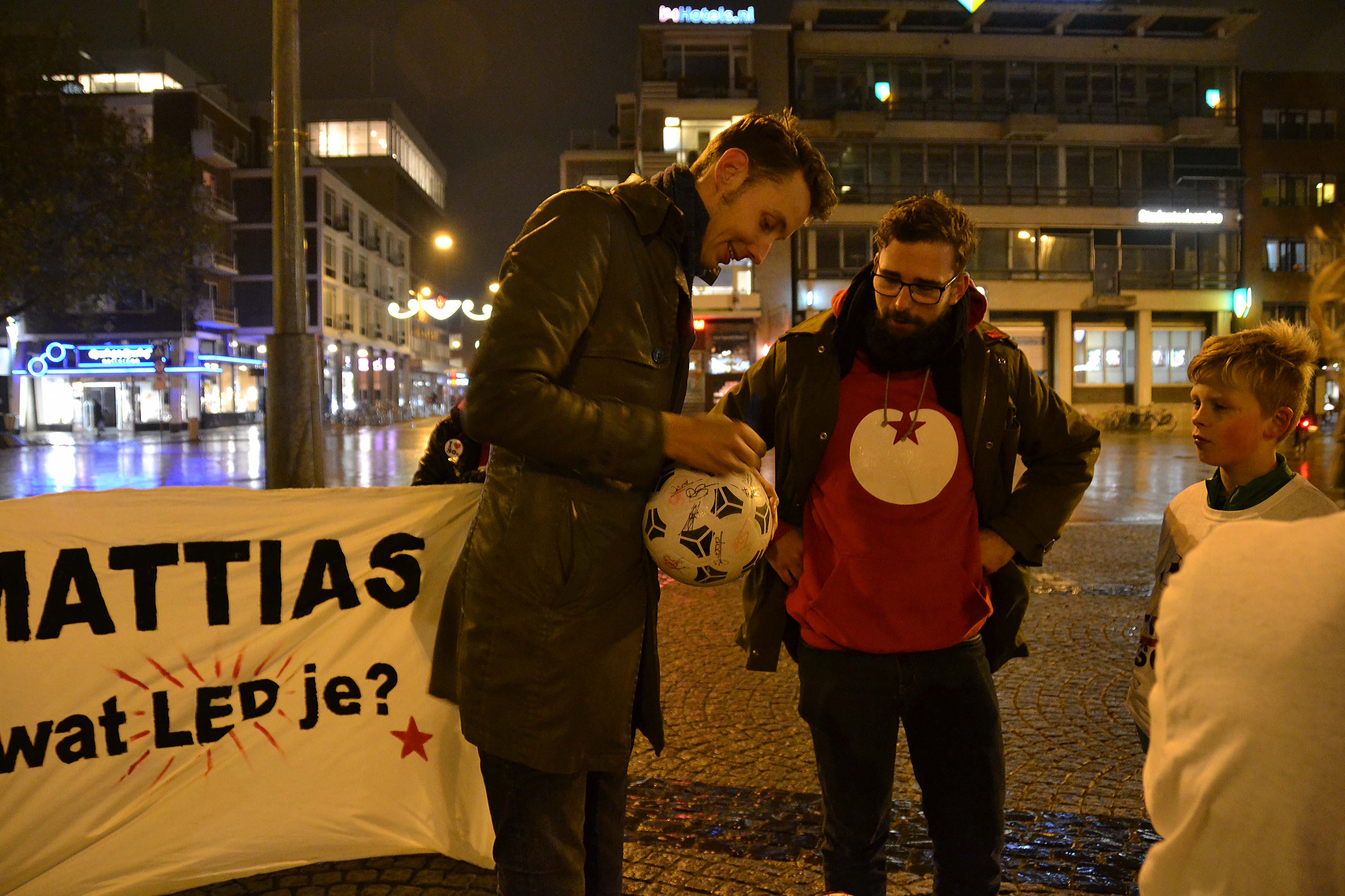 Tijdens de actie voetbalden de jongeren op de Grote Markt. Dit deden zij bij gebrek aan verlichting op hun eigen veld in de wijk. Initiatiefnemer en buurtbewoner Dillon Hummel: “Veel jongeren voetballen dagelijks op het veldje. Dit is ’s winters na vijf uur praktisch onmogelijk. Dat is natuurlijk zonde, want veel jongeren moeten overdag naar school! Als er verlichting wordt geplaatst zal er ook op donkere dagen veel meer worden gesport in Beijum door de jeugd. Het voetbalveld is voor veel jongeren in de wijk echt belangrijk, ook in de winter.”