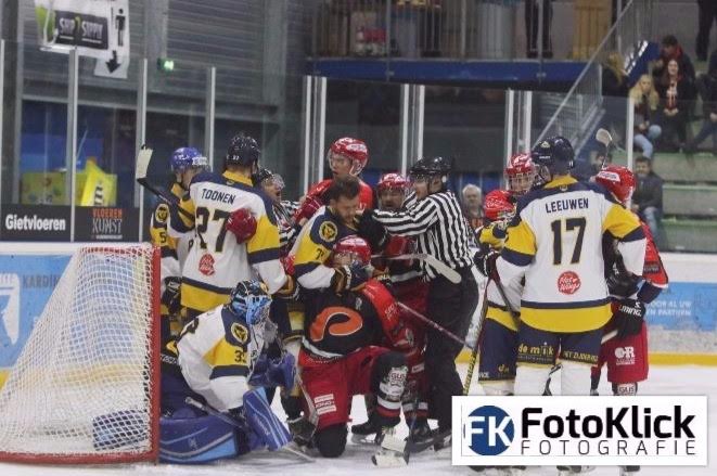 GIJS begon goed en had na de eerste periode een 3-0 voorsprong via Danny Kerstholt, David Bartos en Rodney Kuiper. In de tweede periode kwamen de gasten door Ludek Skop, Joy Turpijn en Cas Staps terug tot 3-3. Tim Bartels wist de Groningers weer op voorsprong te zetten: 4-3.