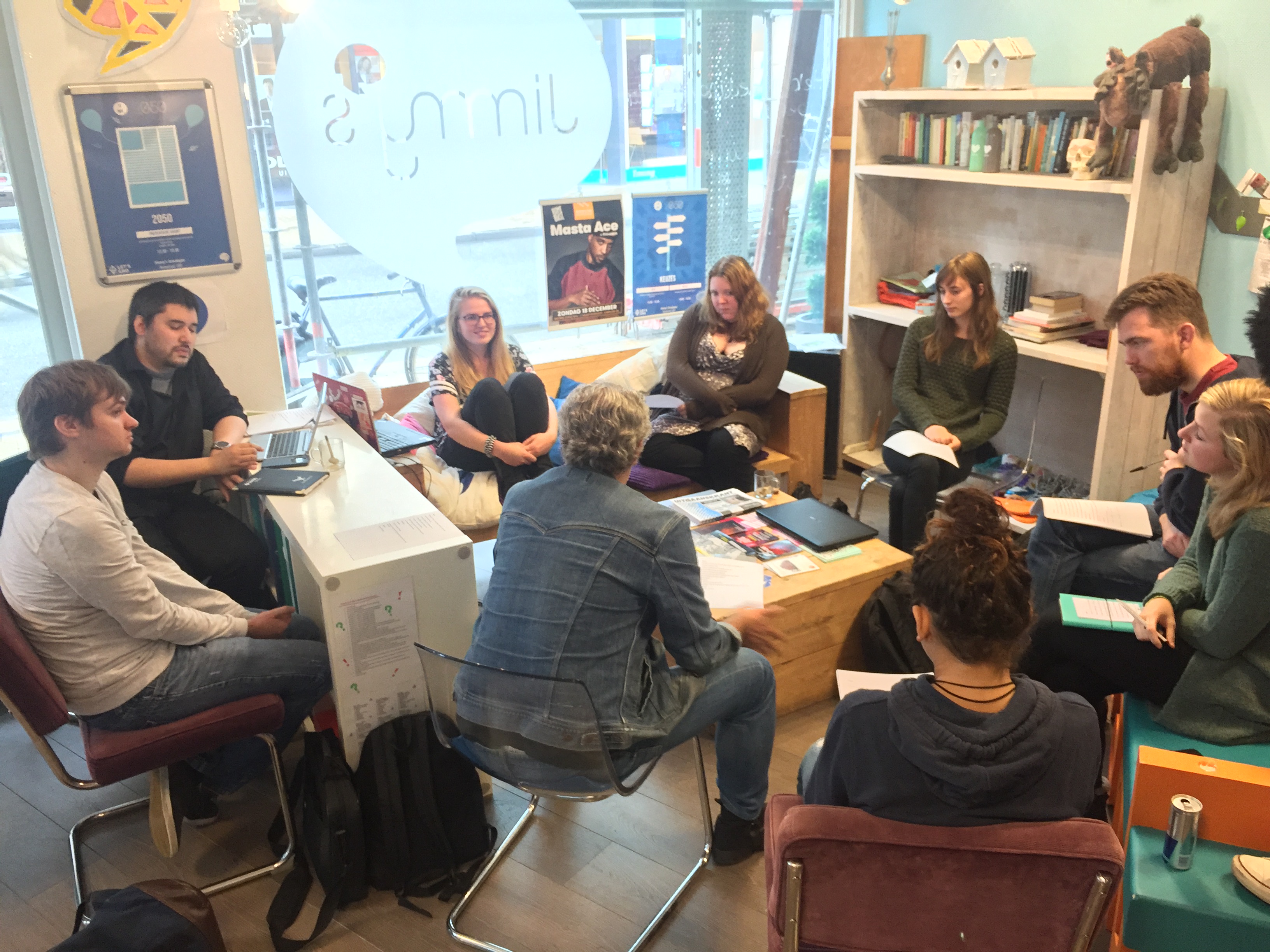 De jongeren van Jimmy’s zijn bezig met het maken van het magazine. In het magazine laten de jonge redacteurs zien hoe zij de toekomst van Groningen zien en wat hun ambities zijn in het jaar 2050.