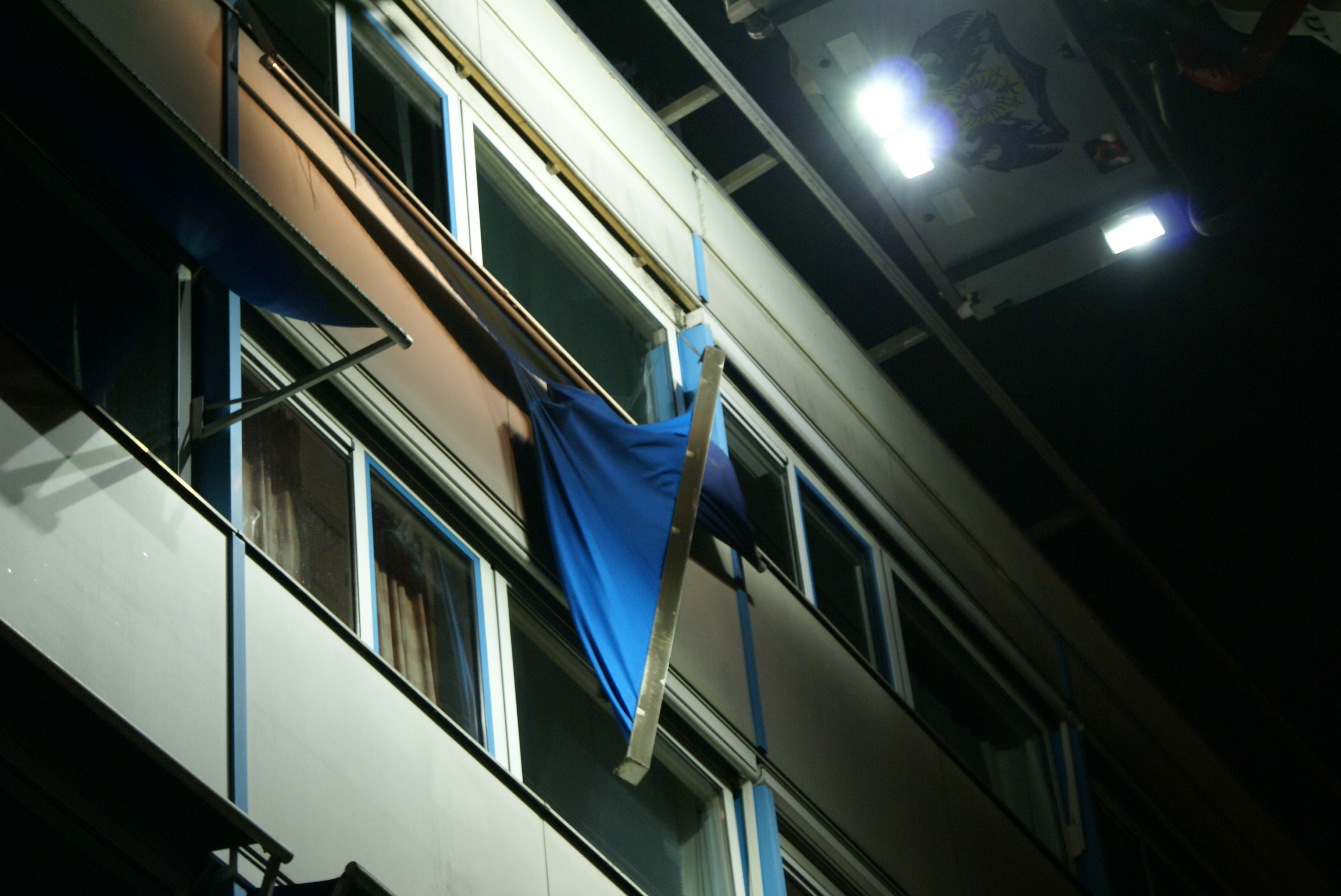 Een hoogwerker van de brandweer moest eerder in de avond al in actie komen aan het Kwinkenplein. Boven de Spac Sport was een zonnescherm los gewaaid. Brandweerlieden hebben het zonnescherm los gehaald, waarna het gevaar was geweken.