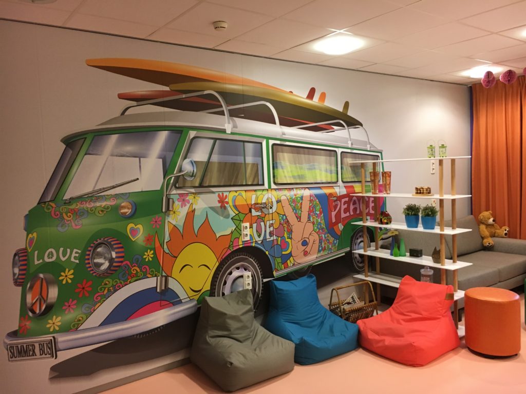 Gerda van Bergen, unithoofd van de Verpleegafdeling Kinderen: ‘Begin dit jaar is het ontwerp door de tieners zelf bedacht. Voor hun is het namelijk erg belangrijk om in het ziekenhuis in een prettige ruimte te kunnen verblijven waar ze zoveel mogelijk zichzelf kunnen zijn.’