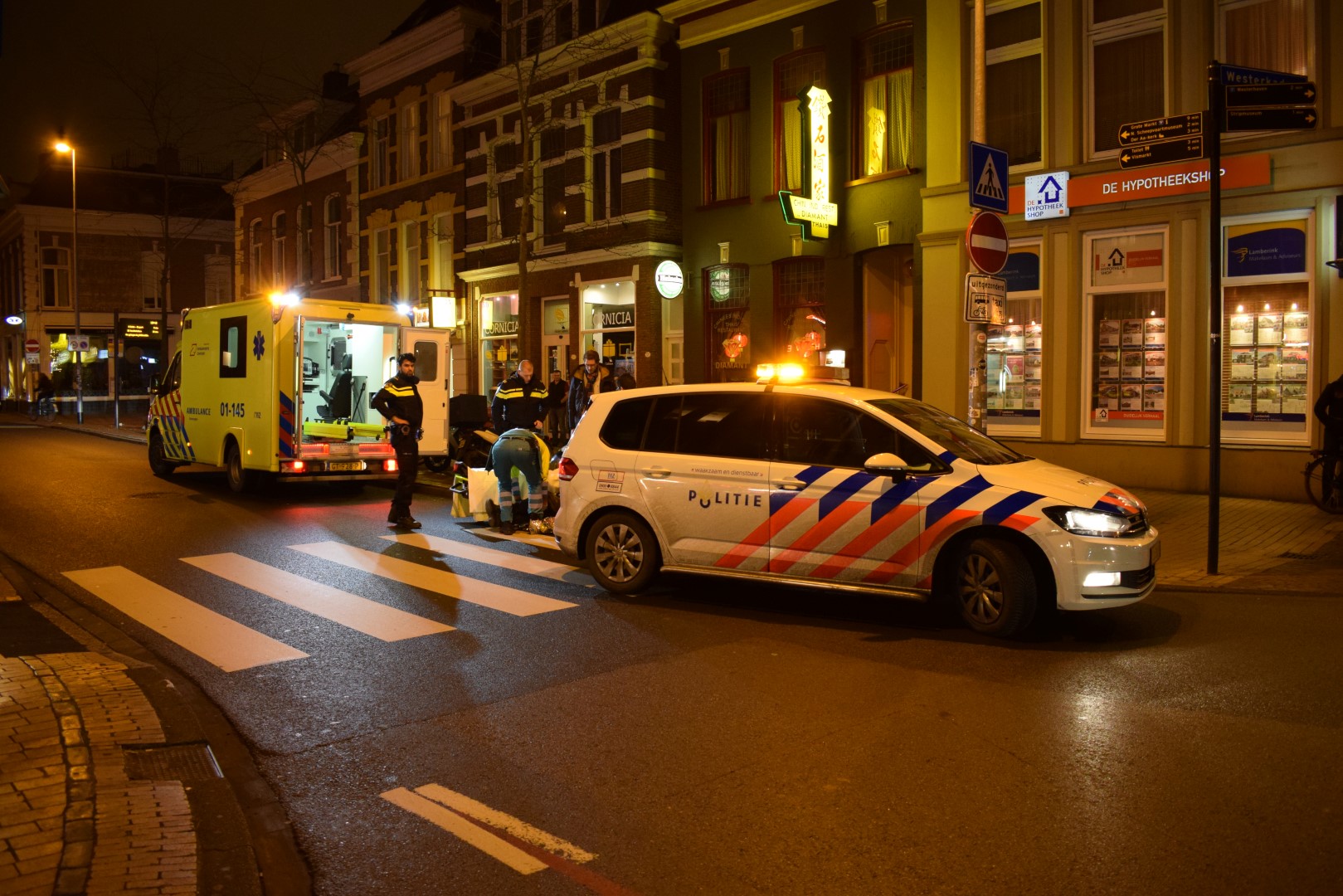 Een bezorger is dinsdagavond gewond geraakt bij een verkeersongeluk op de Aweg. Hij is met onbekende verwondingen overgebracht naar het ziekenhuis.