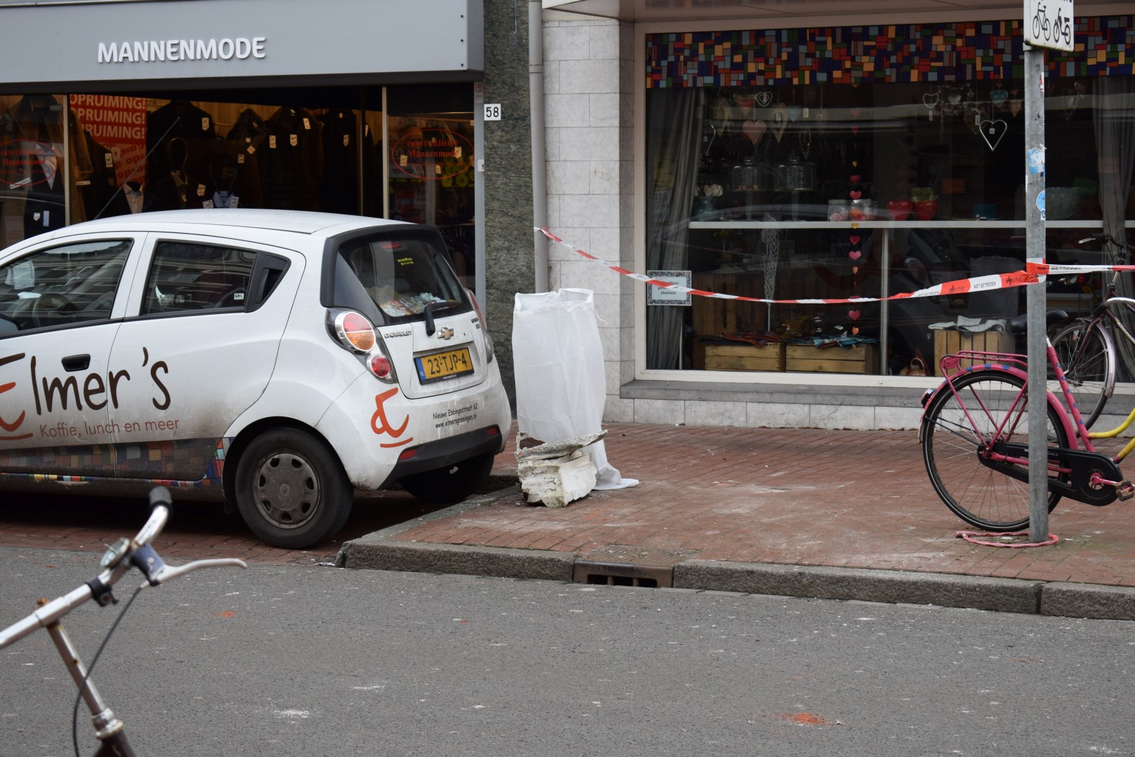 Nadat de brandweerlieden de straat hadden afgesloten, zijn ze met de hoogwerker omhoog gegaan om een controle uit te voeren. Hierbij zijn nog een aantal delen van de gevel weggehaald die ook los zaten.