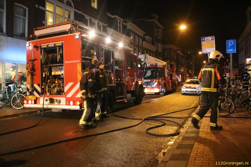 De brand donderdagavond boven een bezorgrestaurant aan de Oude Ebbingestraat is vermoedelijk veroorzaakt door een hennepkwekerij.
