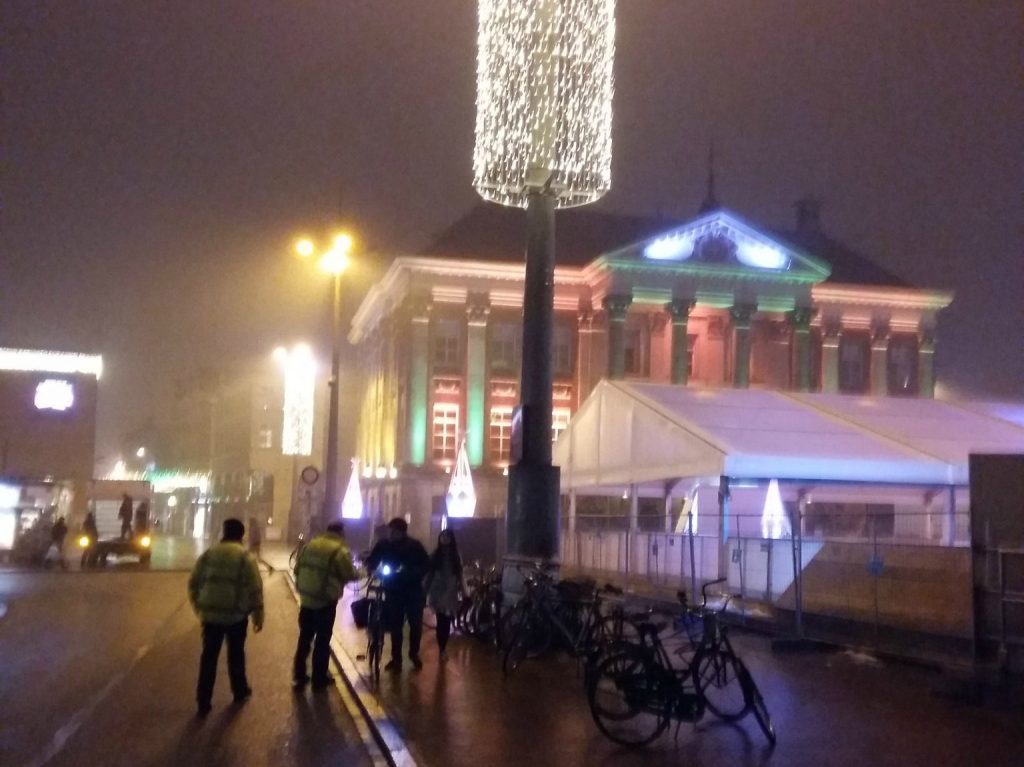 Het fietsparkeerverbod, dat tijdens oud en nieuw op en rondom de Grote Markt gold, is grotendeels genegeerd.
