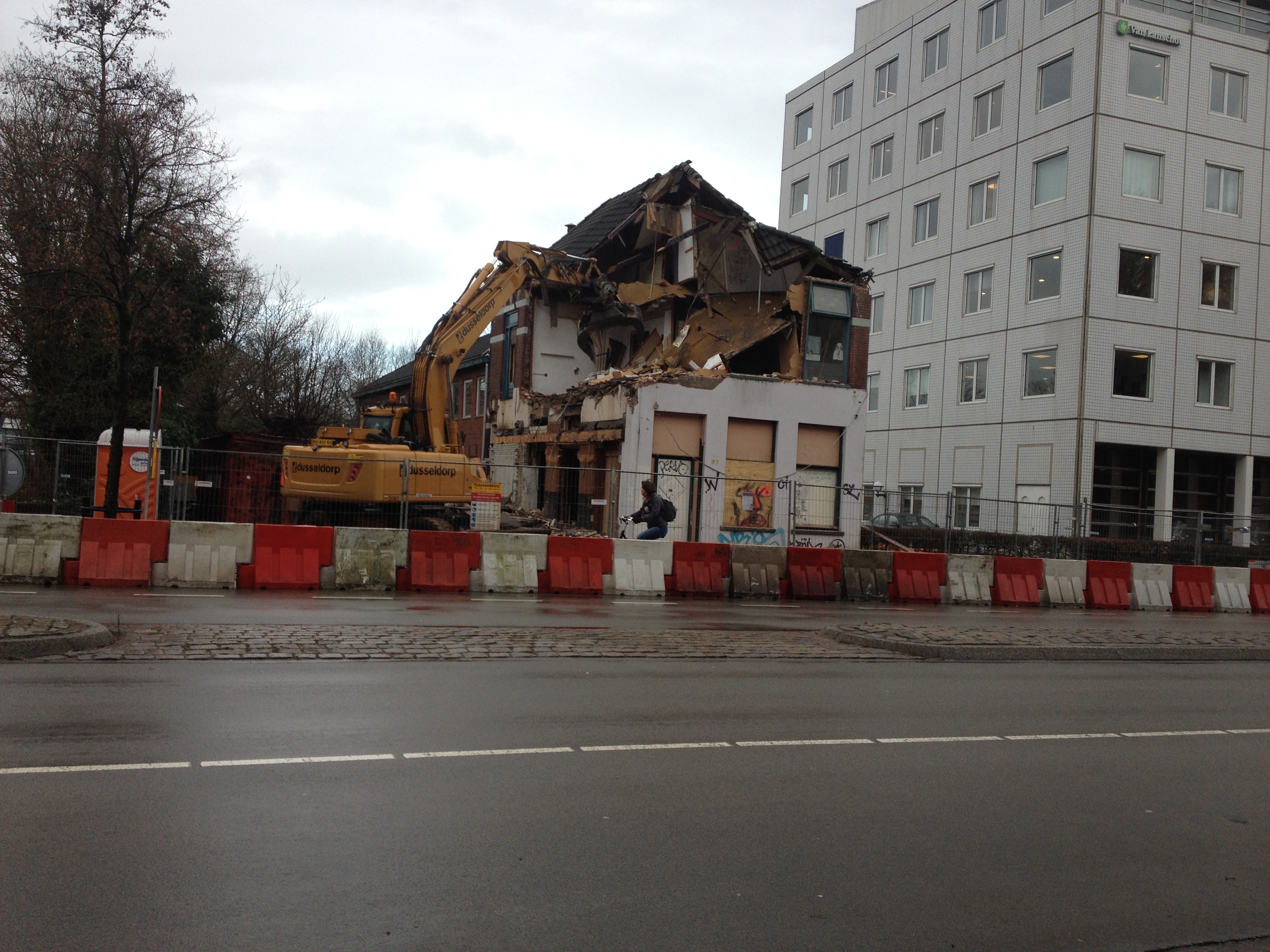 Het sloopbedrijf is dinsdag begonnen met de eerste sloopwerkzaamheden. Als eerste werd de aanbouw met de grond gelijk gemaakt, en woensdag was het de beurt aan de bovenste verdieping. Het autoverkeer ondervind geen hinder van de werkzaamheden.