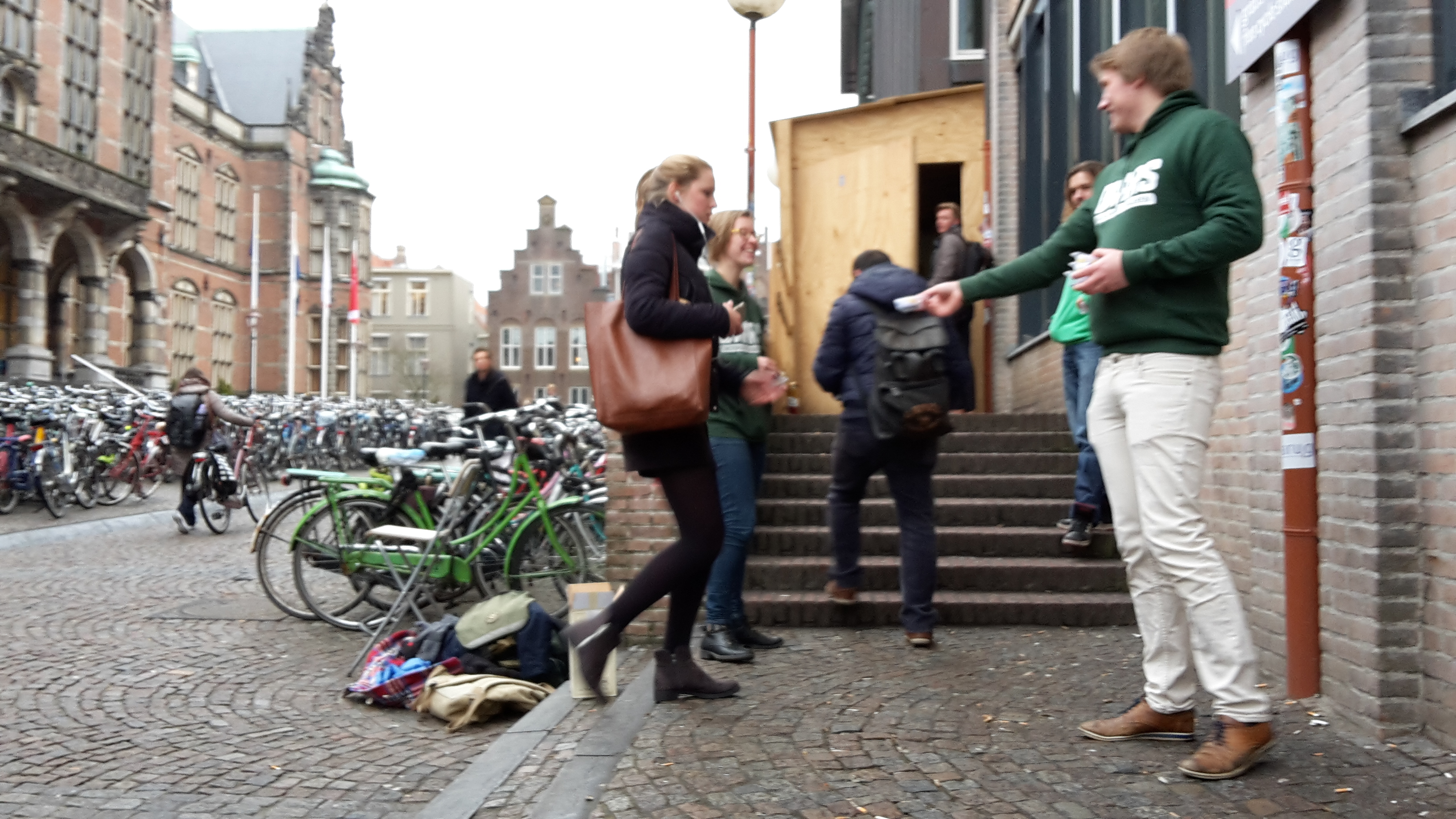 Lang niet alle studenten bij de Universiteitsbibliotheek begrepen direct wat het doel was van de actie. “Deze dopjes zijn zeker tegen de geluidsoverlast tijdens de verbouwing van onze bibliotheek?” vraagt een studente zich af. Na enige uitleg geeft de studente toe: “Politiek, daar heb ik niet echt een mening over. Daar moet ik me meer in verdiepen om er iets over te kunnen zeggen”.