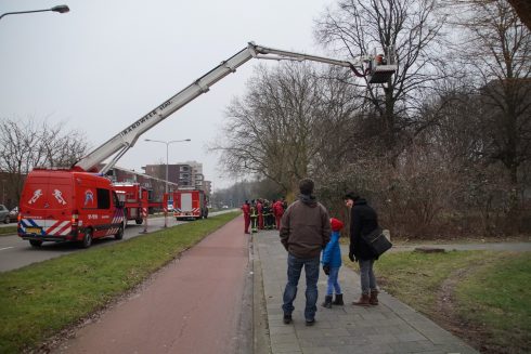 De brandweer rukte donderdag massaal uit voor een kat in de boom in Paddepoel.