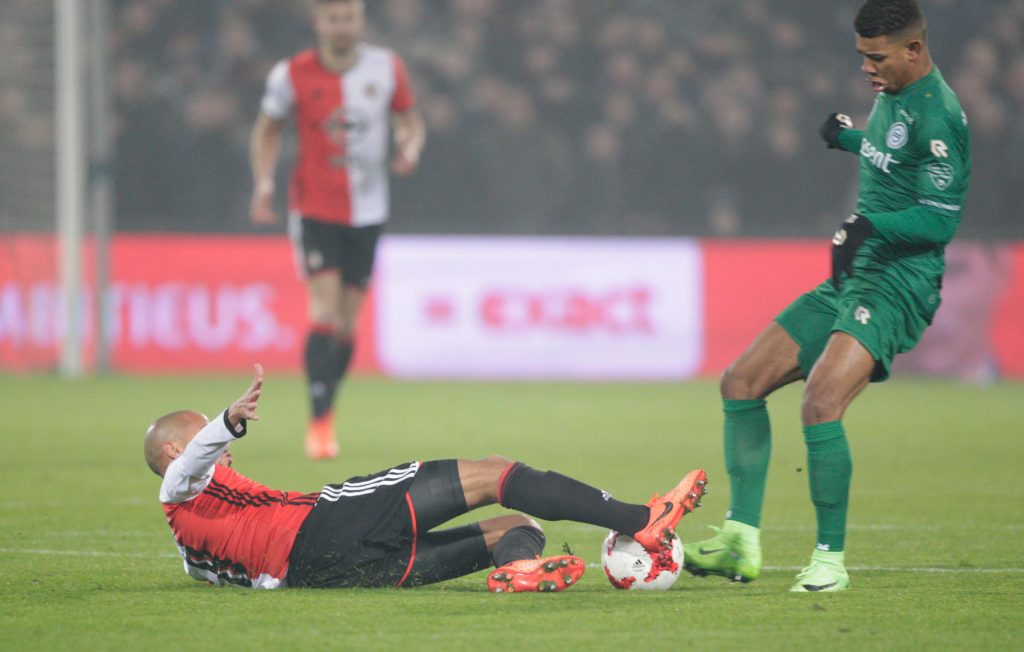 Koploper Feyenoord was zaterdagavond in de eigen Rotterdamse Kuip een maatje te groot voor FC Groningen. Het werd 2-0. FC Groningen bleef ondanks de nederlaag negende staan in de eredivisie.