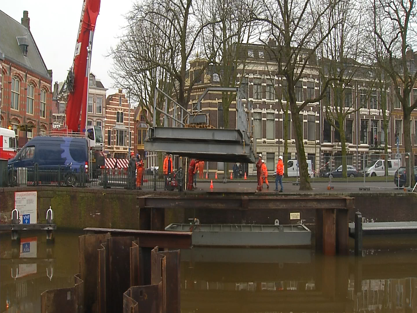 Vrijdagmiddag tegen twaalf uur werd er bij de Museumbrug een noodbrug ingehangen.