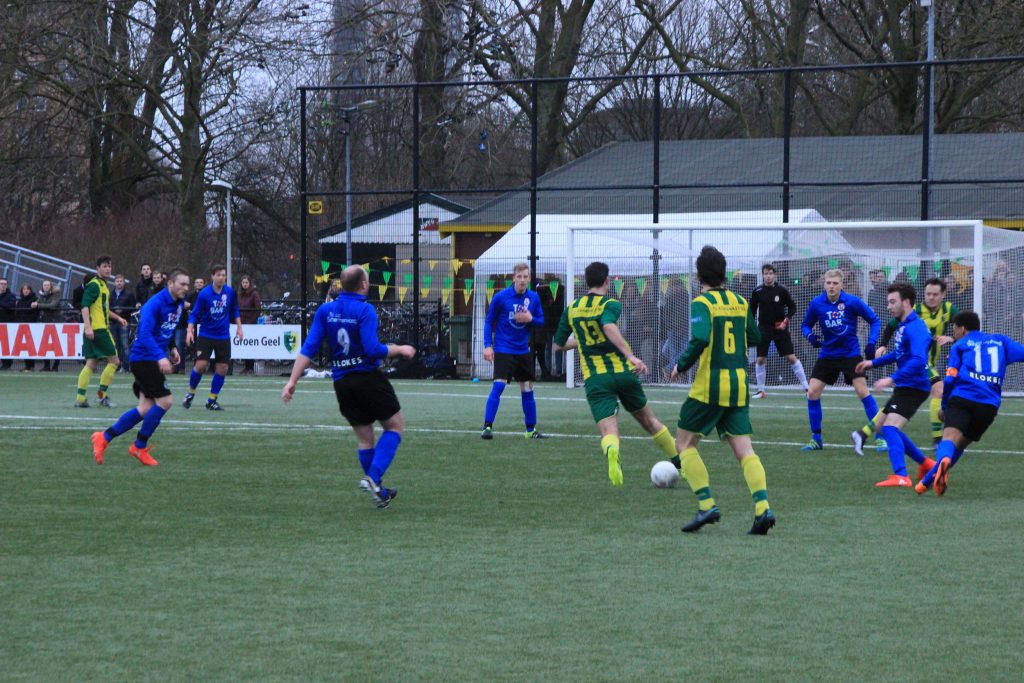 In een matige eerste helft was The Knickerbockers de betere ploeg en kwam na ruim een half uur op 1-0. Een afgeslagen vrije trap kwam voor de voeten van Remco de Haas die raak schoot. De lat stond aan het begin van een leuker tweede bedrijf een grotere voorsprong voor TKB in de weg.