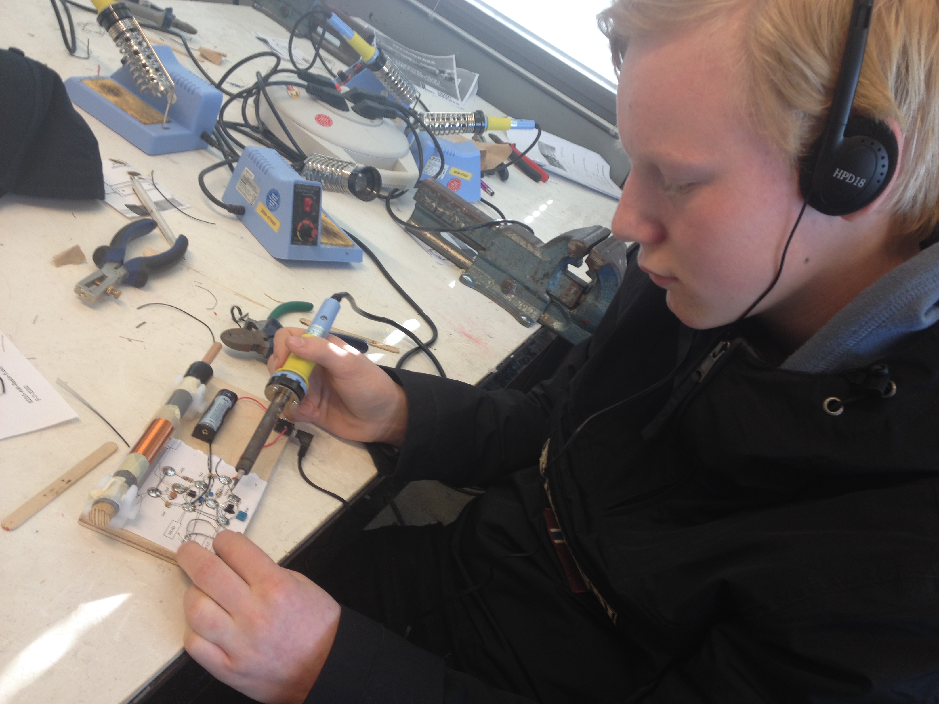 “Ik ben bezig met het maken van een radio-ontvanger”, vertelt Thom. “Kijk, als ik hier aan draai dan verandert de frequentie. Ik vind het erg leuk om dit te maken. Aanvankelijk was ik niet zo enthousiast over de techniek, maar ik denk nu dat ik toch later iets in de ict wil gaan doen.”