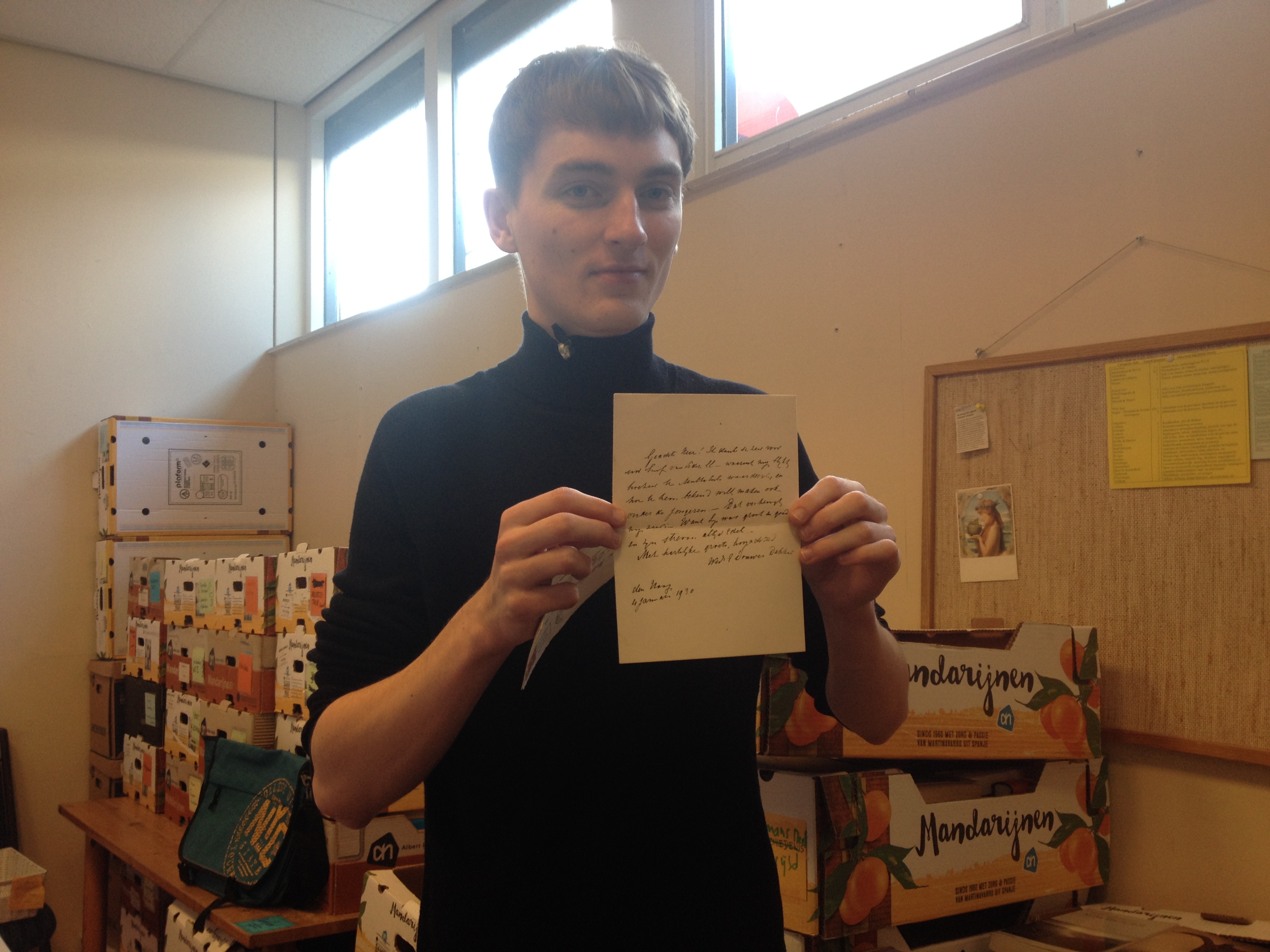 “We krijgen heel veel boeken gedoneerd”, zegt Koen Marée van Books4Life. “Voor we hen te koop aanbieden sorteren wij ze. Een collega van mij was vorige week bezig met een boek van Nelleke Noordervliet toen daar ineens een envelop uit viel. In die envelop zat een brief van de weduwe van Eduard Douwes Dekker die we natuurlijk beter kennen als Multatuli, de schrijver van onder andere de roman Max Havelaar. In de brief bedankt ze iemand die aan de RuG werkt die een compliment maakt over het werk van Dekker.”