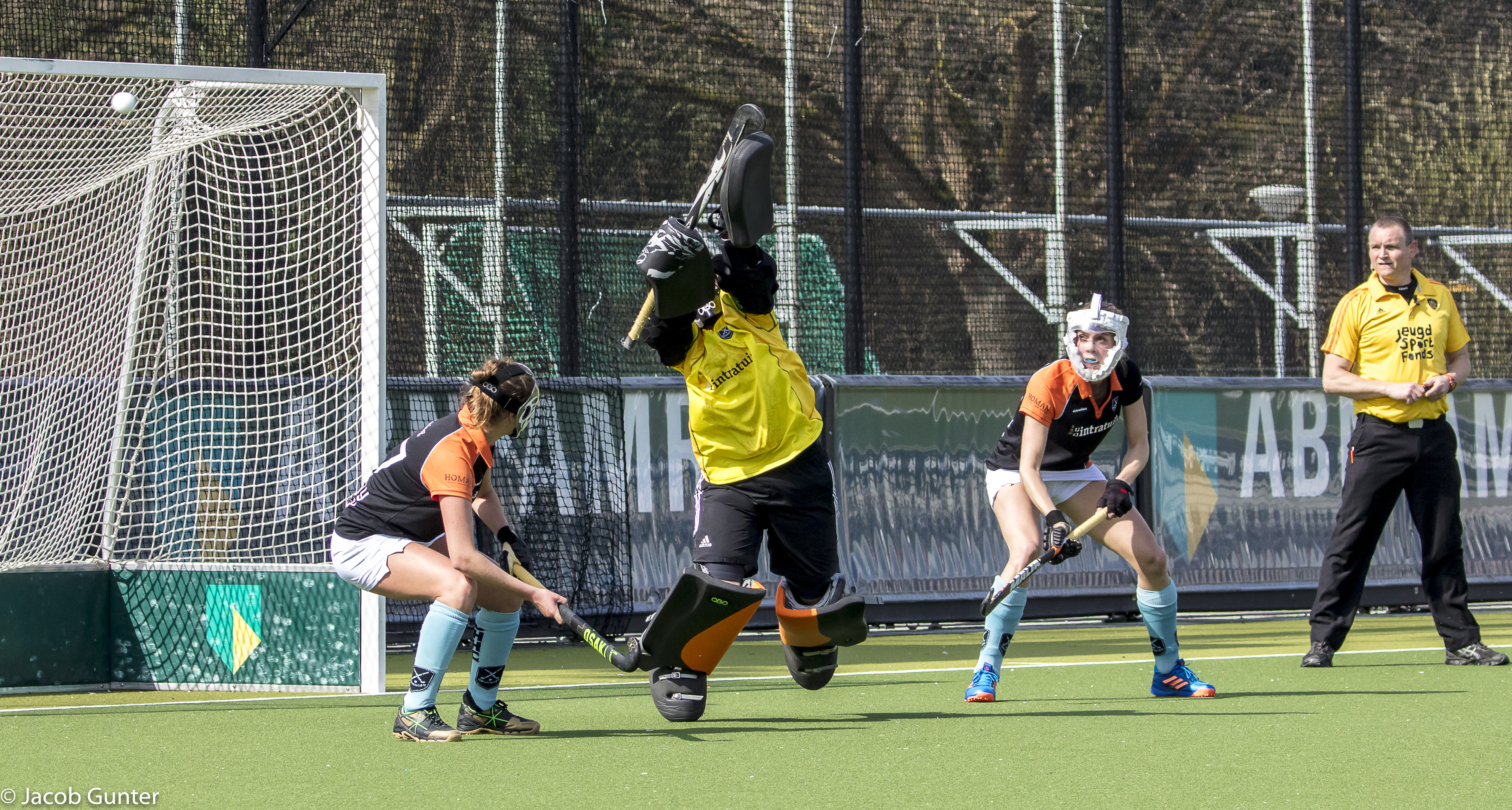 De nummer 7 van de competitie nam in de eerste helft een 2-0 voorsprong. Kort na de pauze bracht ex-international Willemijn Bos de hoop terug bij GHHC, maar vlot daarna kwam de tegenstander opnieuw op een voorsprong van twee doelpunten. De Groningse dames legden het hoofd vervolgens in de schoot, waarna Oranje-Rood alsnog driemaal het doel vond.
