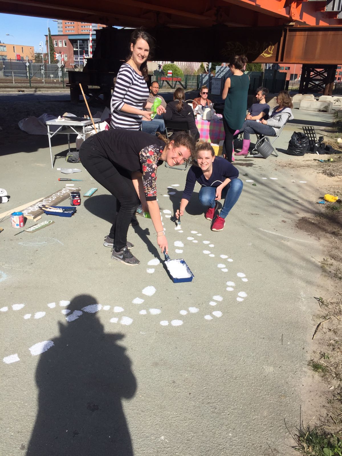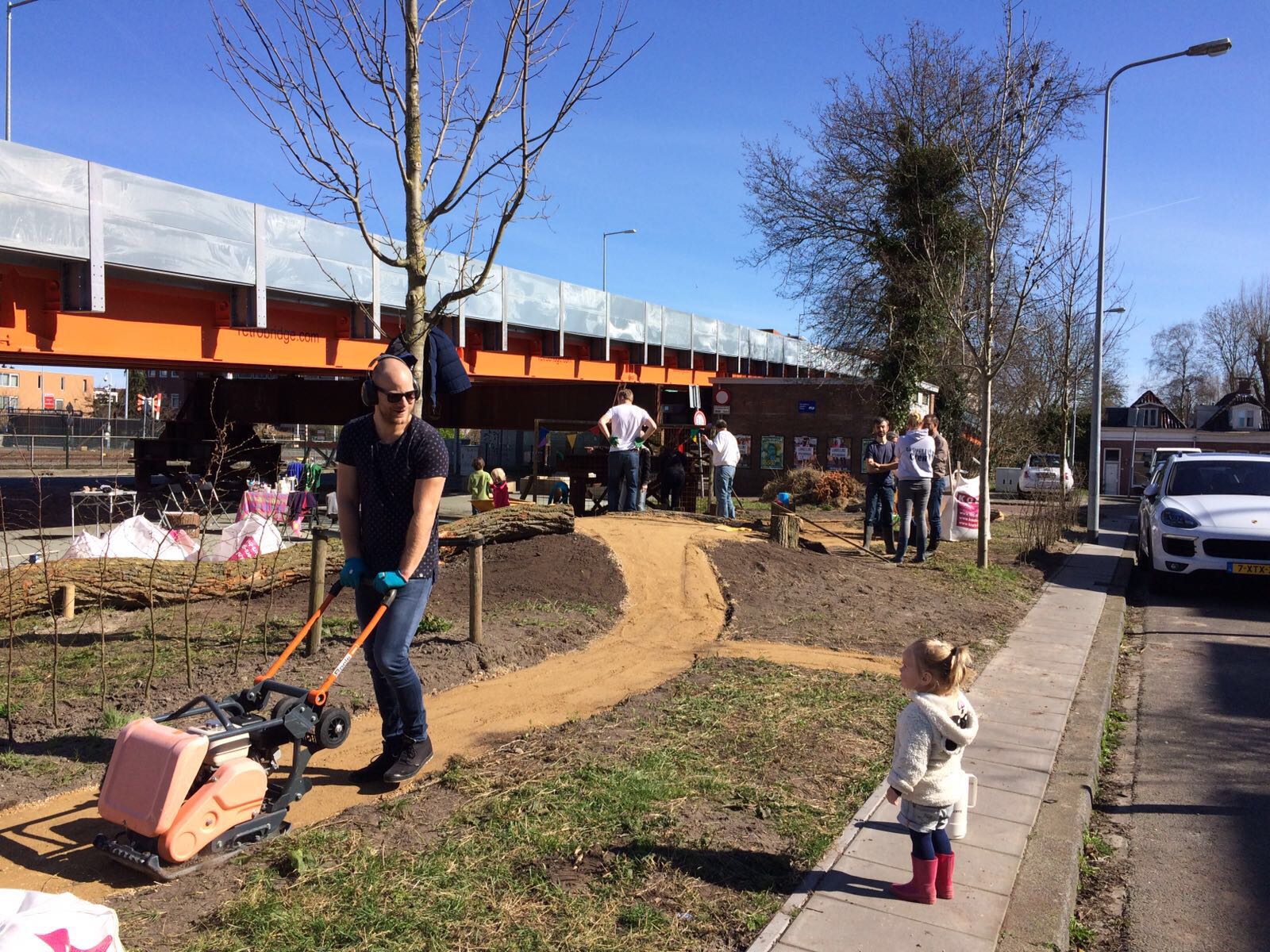 De werkzaamheden begonnen zaterdag in alle vroegte. “Bewoners, jong en oud, waren van de partij om het Koeriersterpad aan te leggen”, vertelt bewoonster Audrey Wijnberg. “Dit pad hebben we aangelegd op de groenstrook die ontstaan was na de komst van de busbrug. Bij de werkzaamheden hebben we het gras ingeruild voor een pad, dat we aangekleed hebben met boompjes, boomstronken en andere jonge aanwas.”