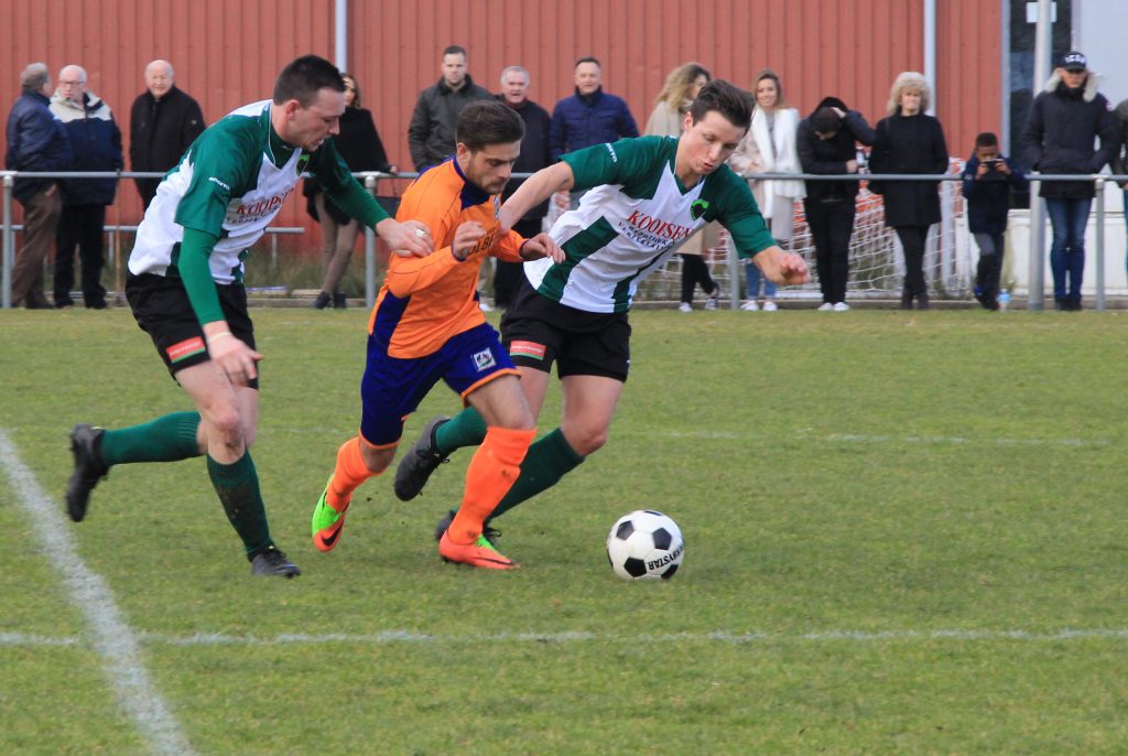 Foto Andor Heij: Huseyin Kurt van PKC tussen twee Winsum spelers.