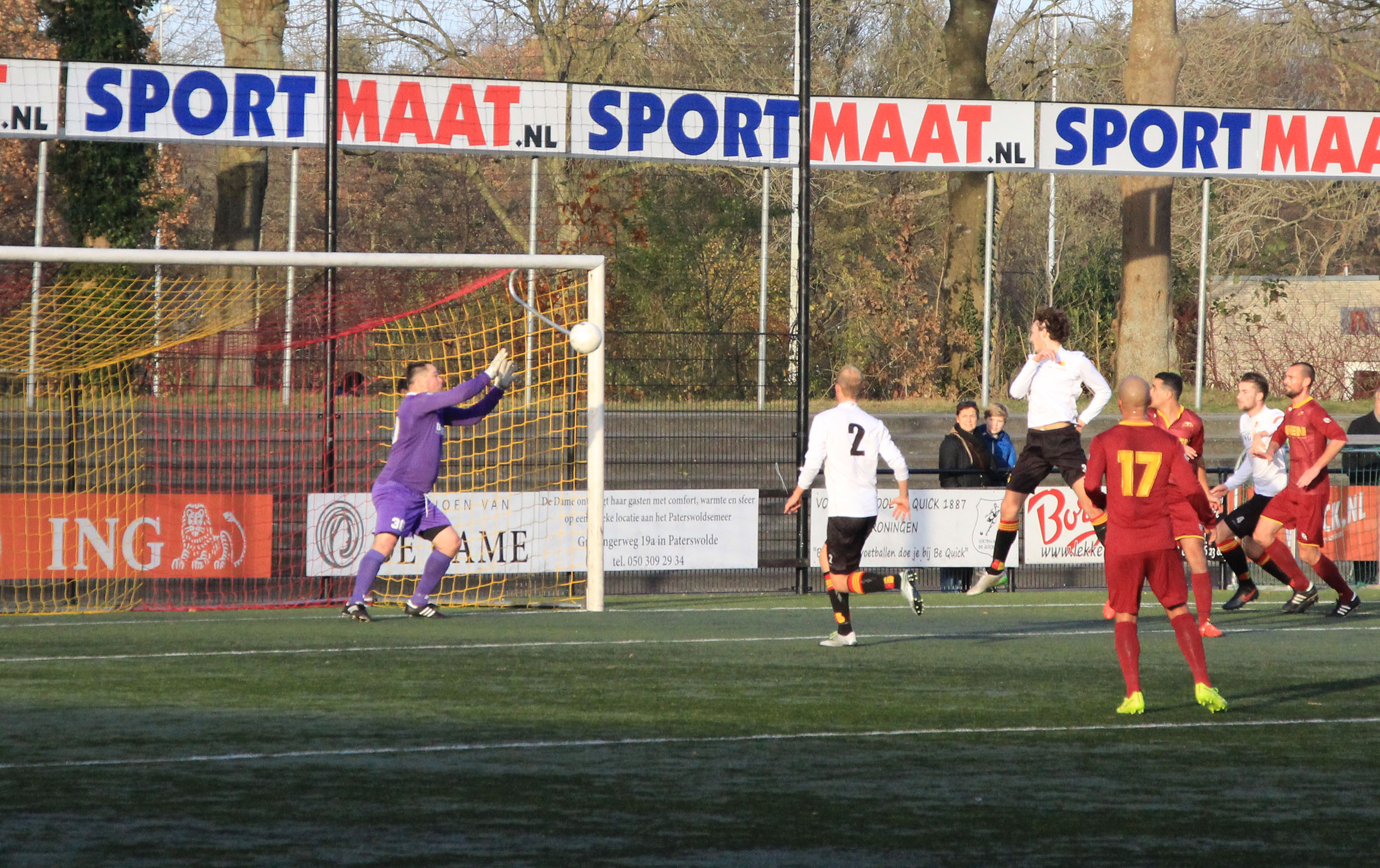 Foto Andor Heij: Be Quick 1887 - De Dijk. Twan Nieboer van Be Quick stuit op De Dijk doelman Jeroen Verhoeven.