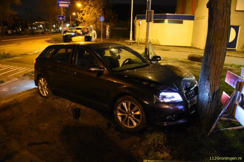 Aan de Rijksweg is woensdagavond een personenauto tegen een boom gebotst. Er was veel schade, maar er vielen geen gewonden.