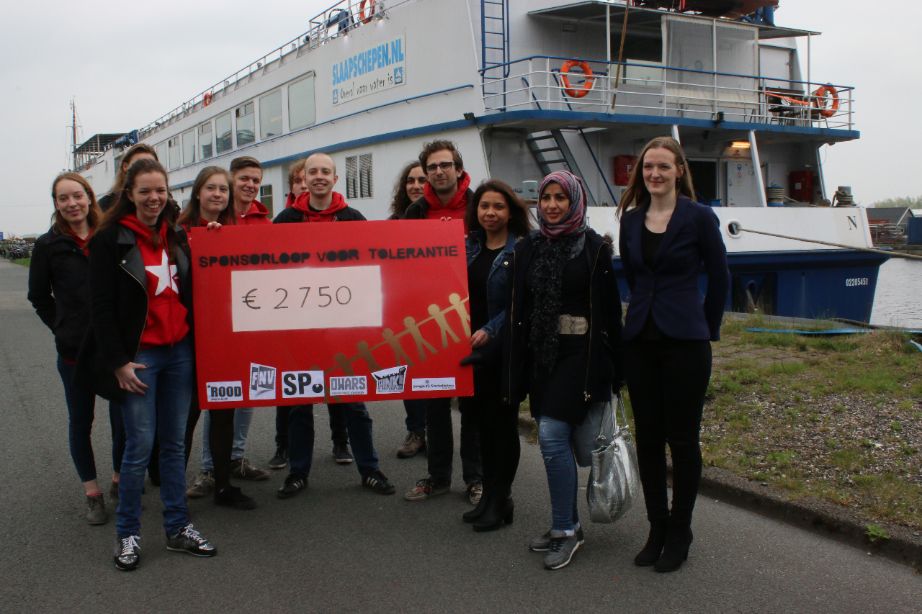 Vrijdag overhandigde ROOD, de jongerenorganisatie van de SP, 2750 euro aan de Bed-, Bad-, Broodvoorziening in Groningen. Het bedrag is bijeengebracht tijdens de loop voor tolerantie. Meer dan driehonderd donateurs en donaties van de FNV en SP Groningen brachten het eindbedrag bij elkaar.
