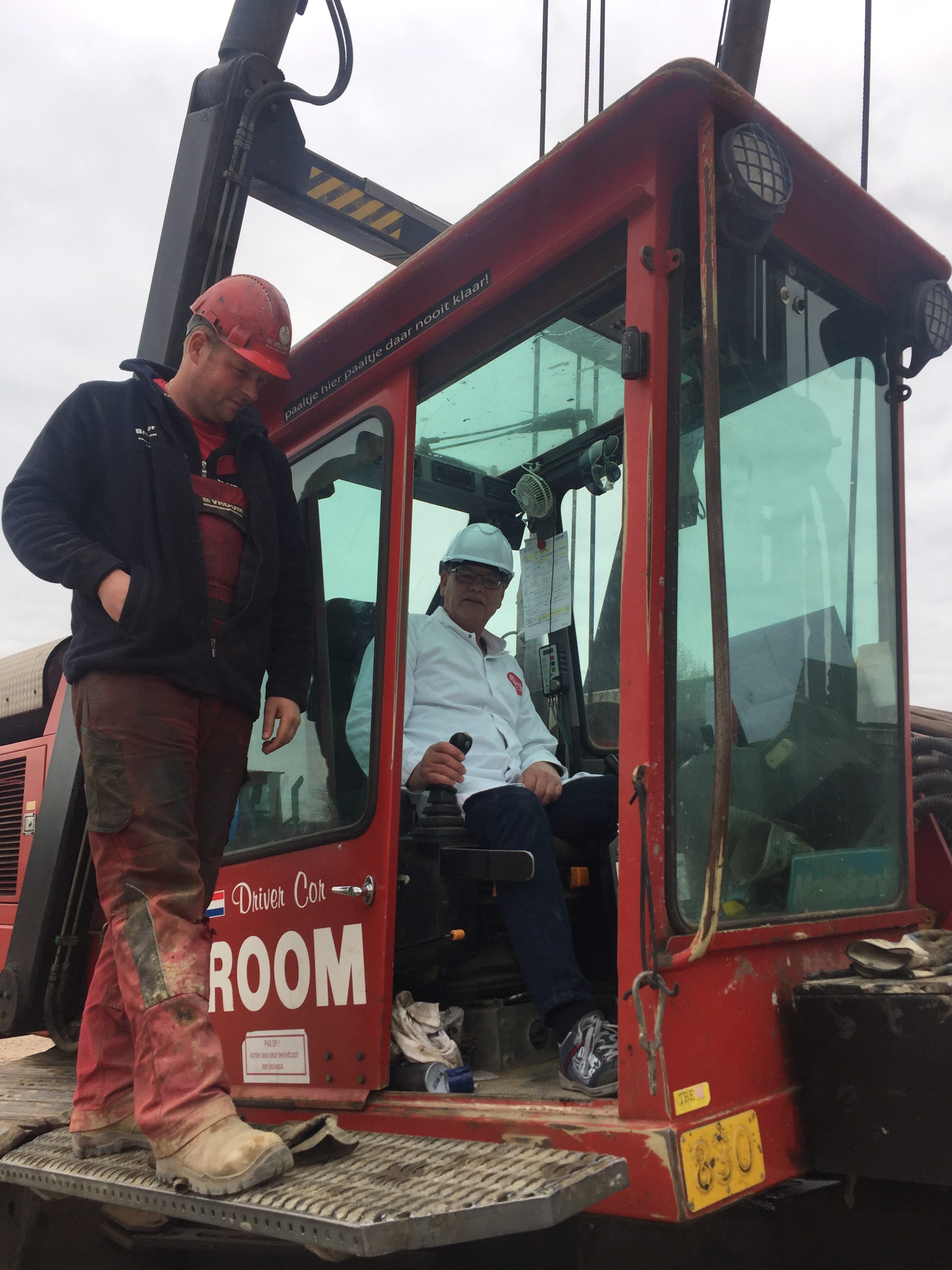 Rikus Hoving slaat de eerste paal voor de nieuwe logistieke hal. Hij is de oudst gediende en werkt al 45 jaar bij de Marne.