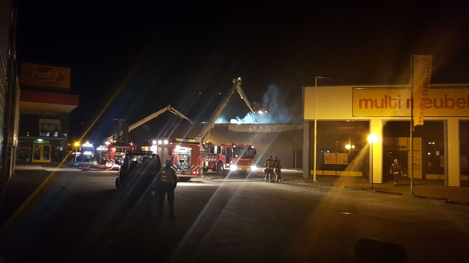 De melding van de brand kwam rond 00.55 uur bij de brandweer binnen die daarop uitrukte met een bluswagen en een hoogwerker. Bij aankomst werd er flink wat rookontwikkeling geconstateerd in het magazijn van de winkel, waarop opgeschaald werd naar ‘middelbrand’ en een tweede bluswagen ter plaatse kwam.