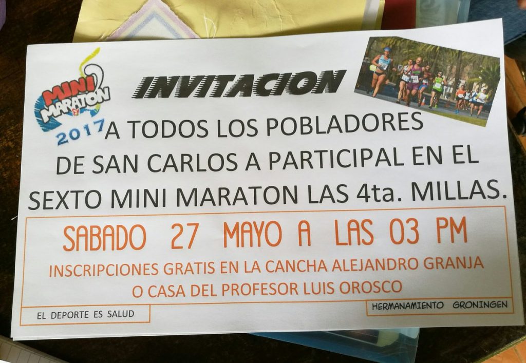 In Nicaragua wordt vandaag de 4 Mijl van San Carlos gelopen. Groningen heeft sinds 1986 een stedenband met de Zuid-Amerikaanse stad. Vanwege het tijdsverschil met San Carlos begint de 4 Mijl daar om elf uur ’s avonds, Nederlandse tijd.