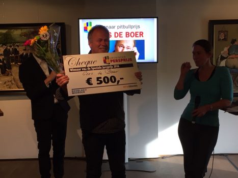 Goos de Boer won vanavond de Pitbullprijs. Dat is een prijs voor bijzondere verdiensten.